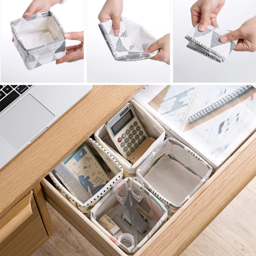 Тканевая корзина для хранения, настольный органайзер с милым рисунком для всякой всячины, сумка для фотографий, многофункциональная складная коробка для хранения