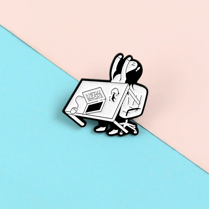 Значок с эмалью устали от работы, черно-белая брошь на лацкан для р...