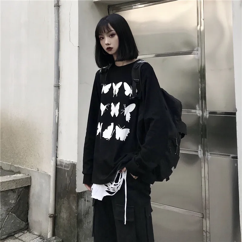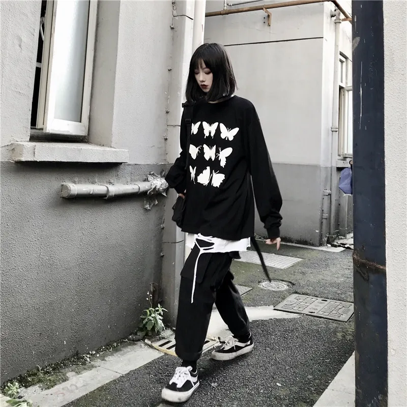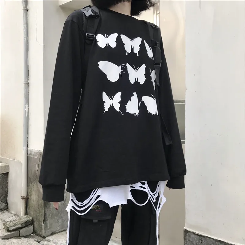 Женские футболки, топы, японский Kawaii, Женская свободная футболка Ulzzang Ins с принтом бабочки, Женская Корейская одежда Harajuku для женщин