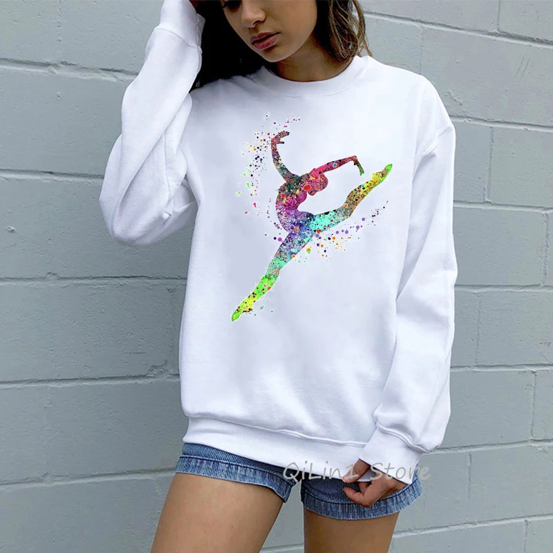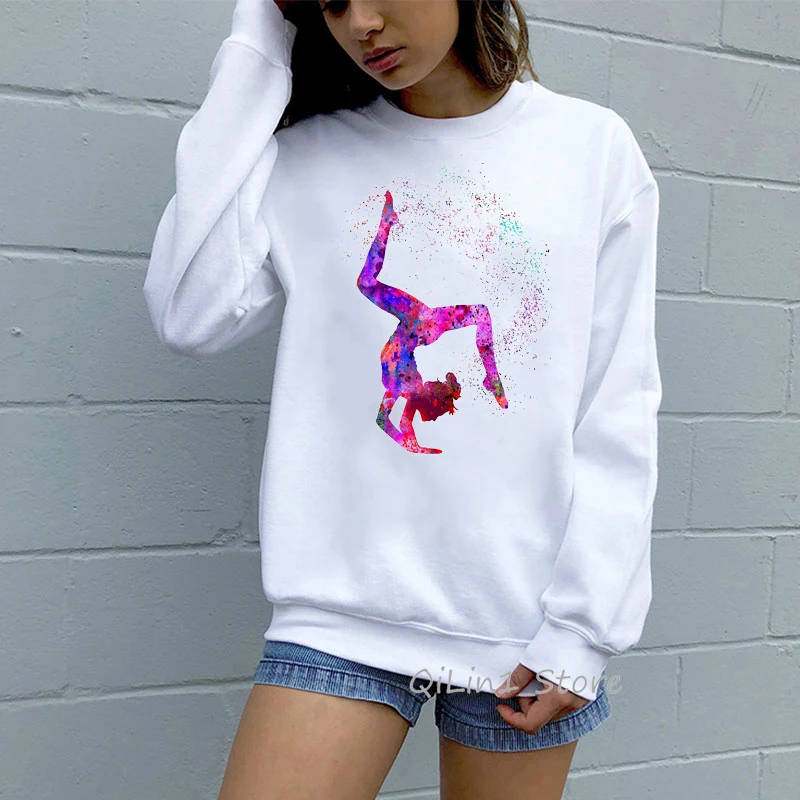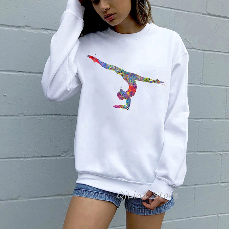 Тренировочный костюм с акварельным принтом гимнастики для девочек, уличная одежда 90-х годов, Женская забавная Милая Толстовка Оверсайз, кавайная одежда, Свитшот сделай сам