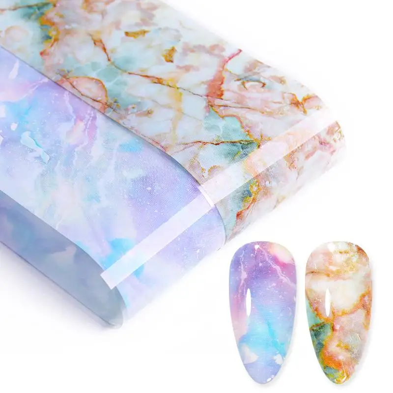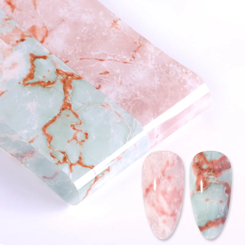 Фольга для ногтей, 1 коробка, мраморная серия, переводная наклейка для дизайна ногтей, бумага, розовая, синяя фольга, яркий мрамор, украшение для самостоятельного дизайна