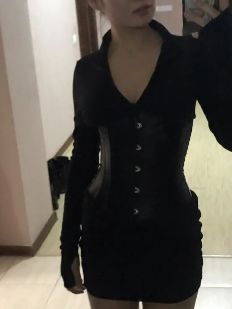 Это базовое черное облегающее платье с высоким воротом. Тонкий, но материал мягкий и хлопковый.
