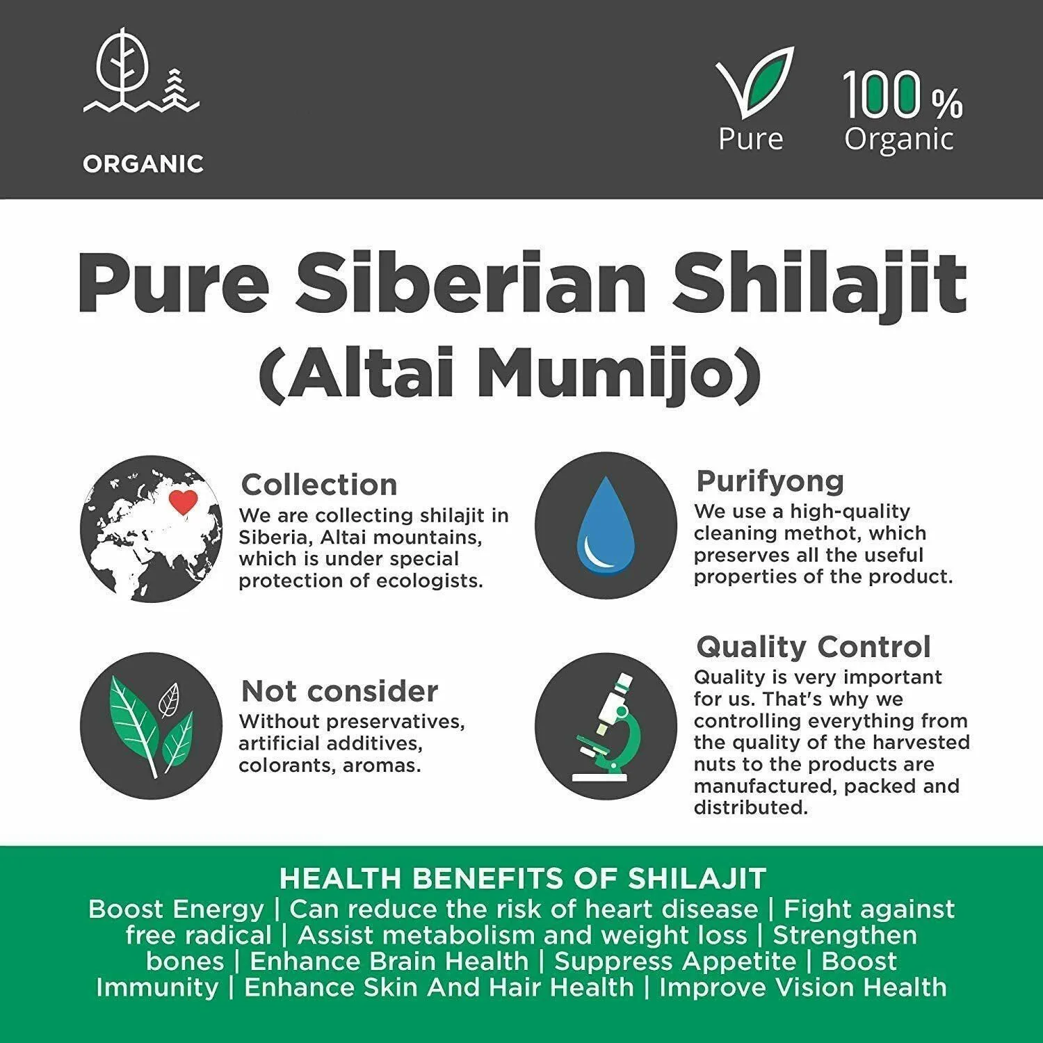 Содержание: очищенный shilajit 100%, без консервантов или добавок