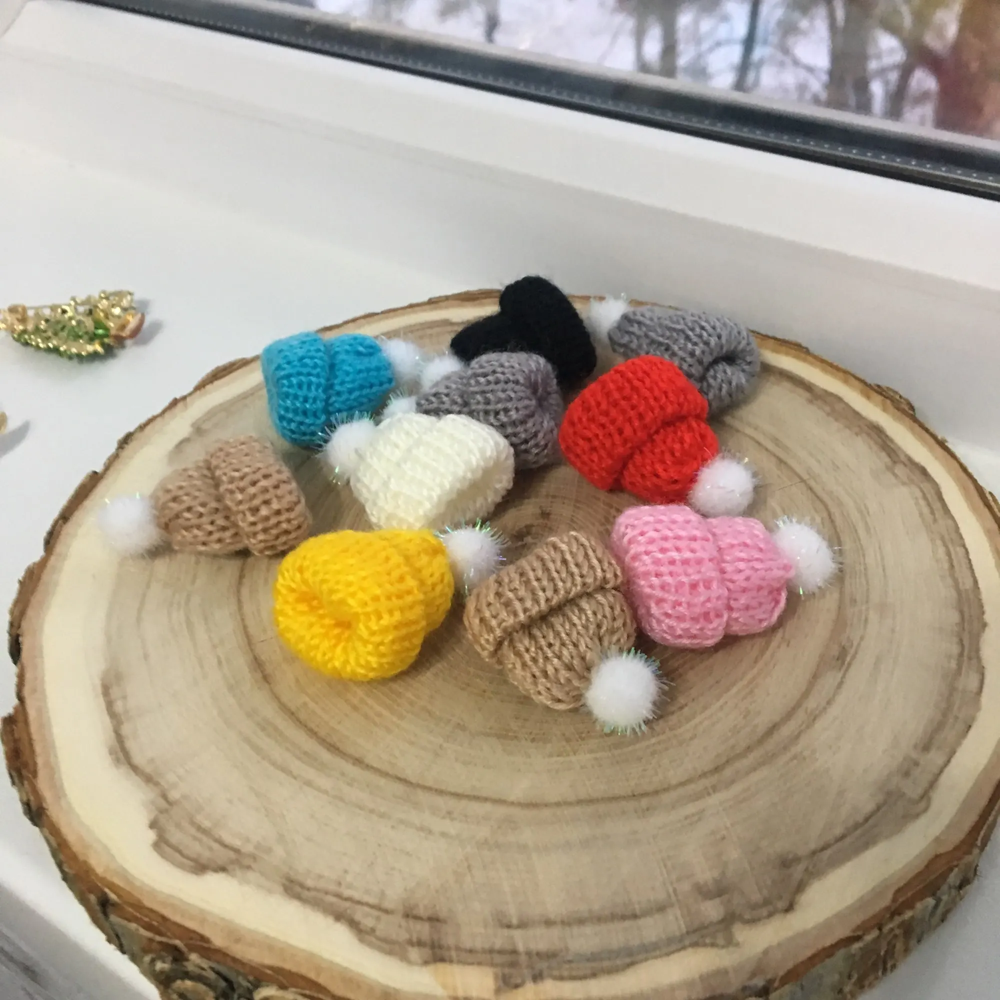 Миниатюрная вязаная шапка ручной работы для украшения кукол 3,5 см