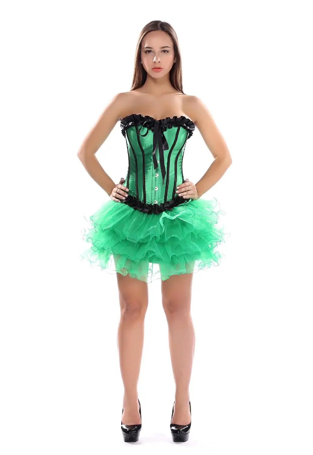 Женский костюм на Хэллоуин, сексуальные корсеты, Полосатое нижнее белье, топ, готический корсет, розовый корсетный бюстье, комплект с юбкой зеленого цвета