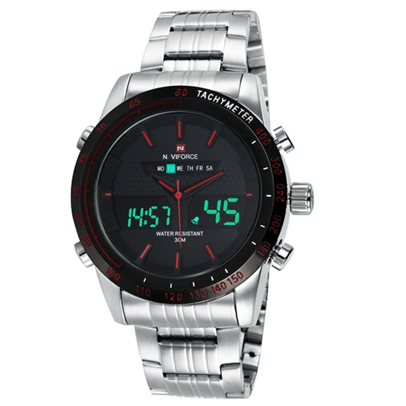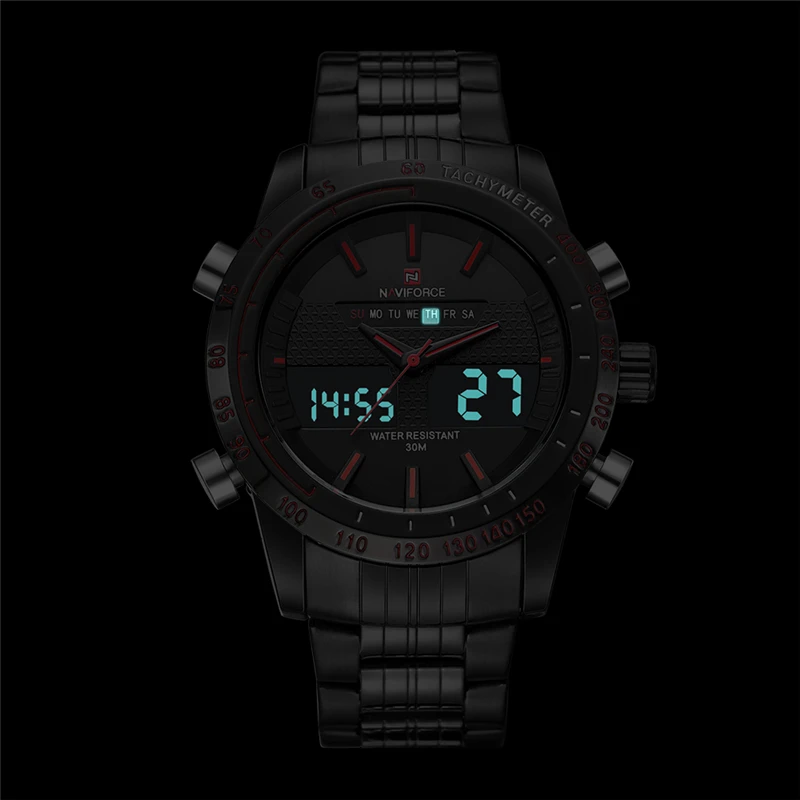 Наручные часы NAVIFORCE Мужские кварцевые цифровые, полностью стальные, спортивные, аналоговые