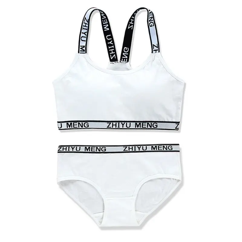 Нижнее белье для девочек-подростков, мягкий хлопковый комплект с бюстгальтером с буквенным принтом для маленьких девочек, свободный размер