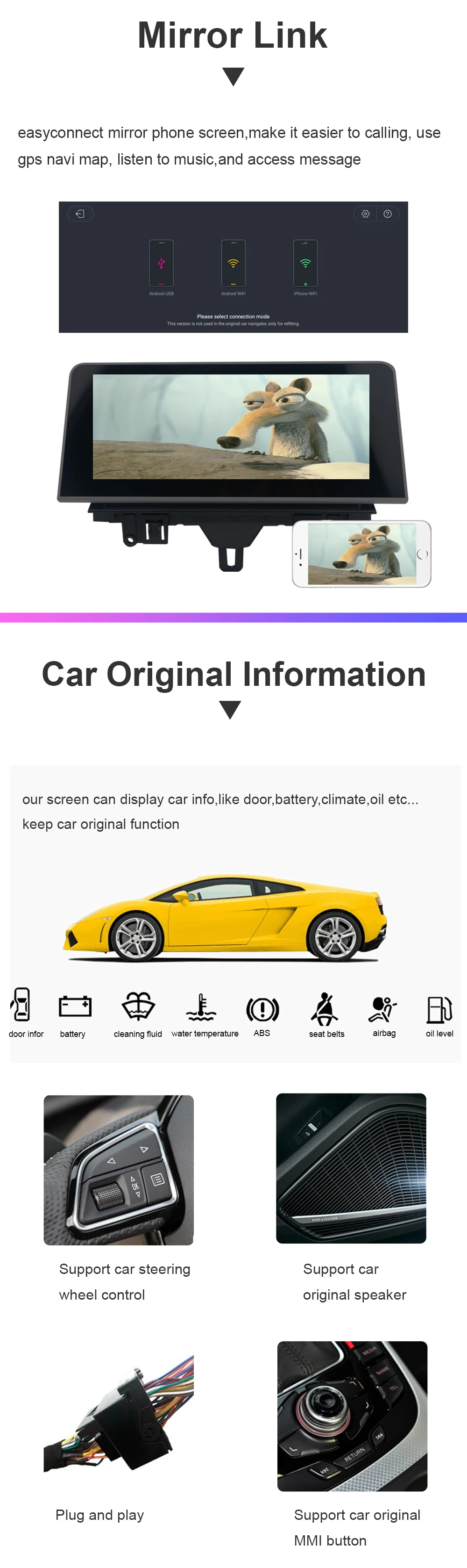 2.Совместим с заводским Canbus, поддерживает iDrive, управление рулевым колесом, информацию о автомобиле.