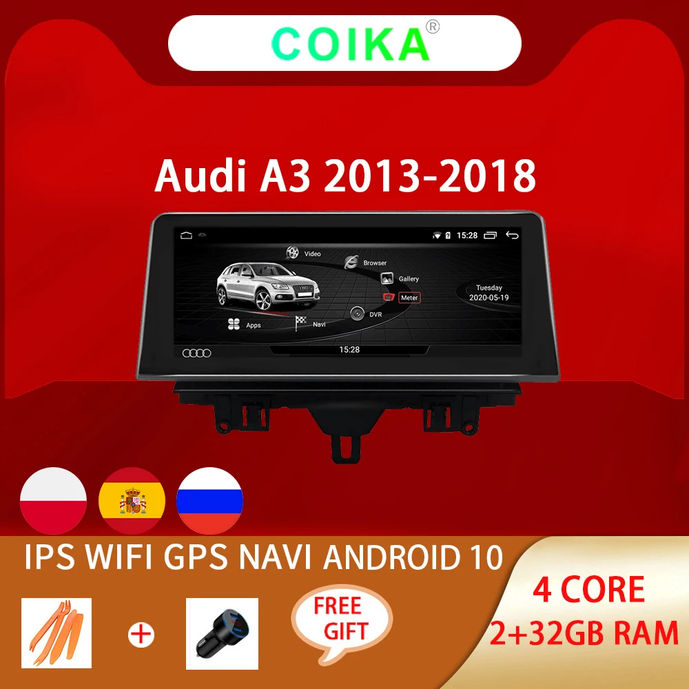 Автомобильный мультимедийный плеер COIKA, система Android 10, для Audi A3 2013-2019, Wi-Fi, 2 + 32 ГБ ОЗУ, BT, Google IPS, экран GPS, навигация, стерео
