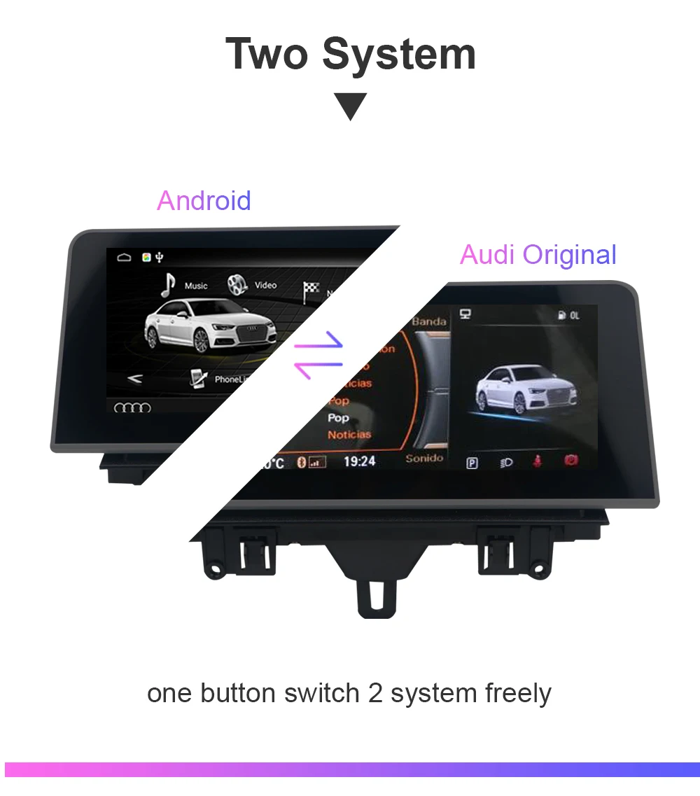 6. Одно кнопочное Переключение Системы android и audi, сохраняет оригинальную функцию всего автомобиля