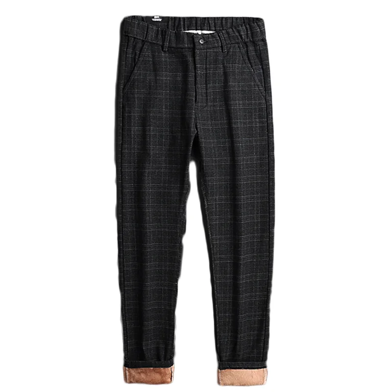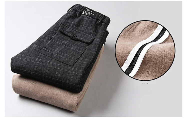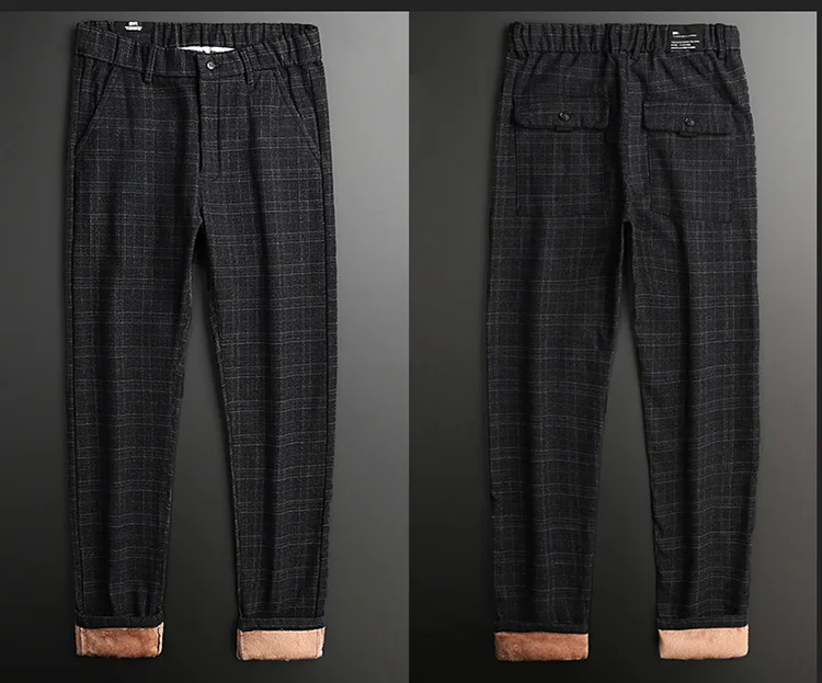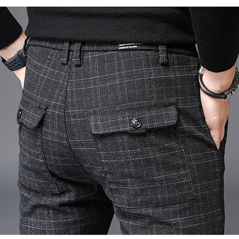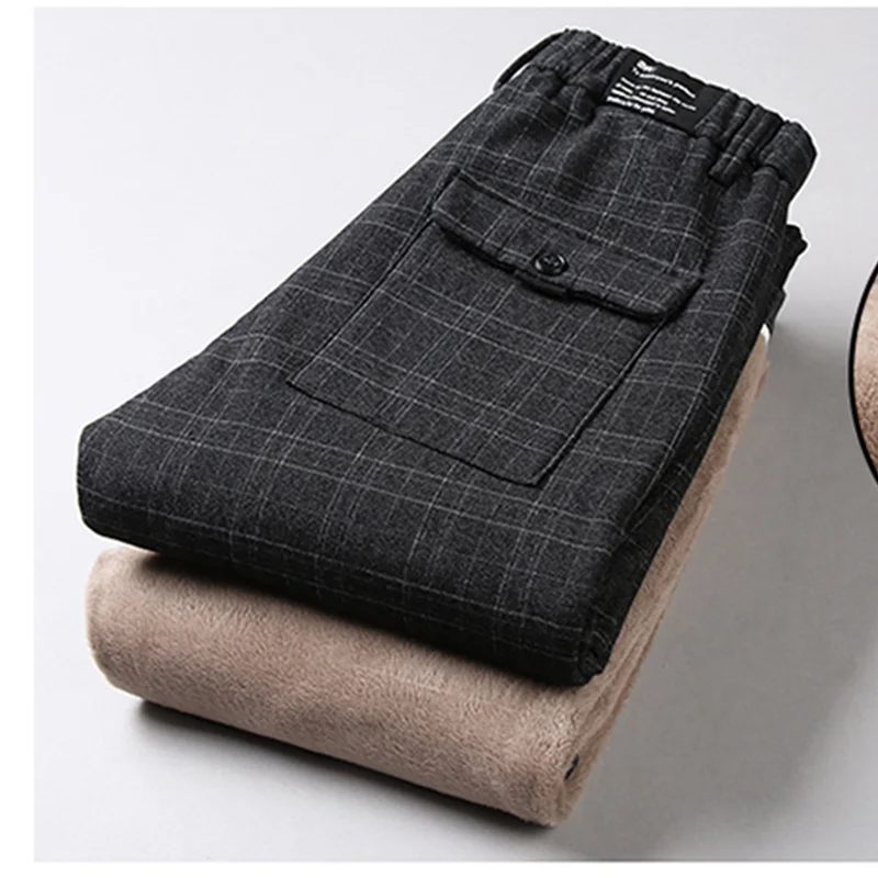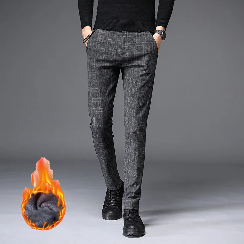 Осень-зима 2021, бархатные утепленные брюки HCXY для мужчин, клетчатые рабочие брюки в клетку, мужские облегающие теплые брюки-карандаш для мужчин