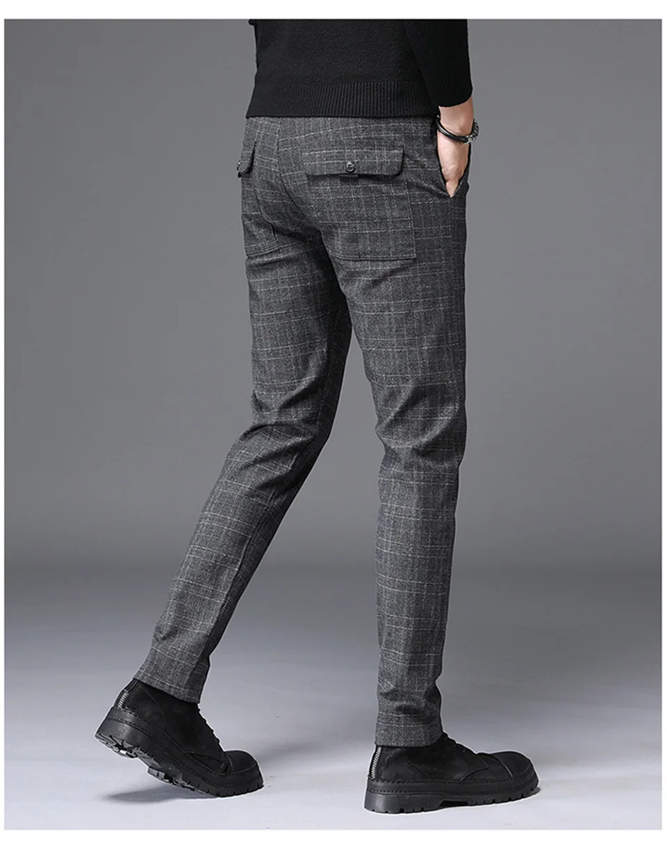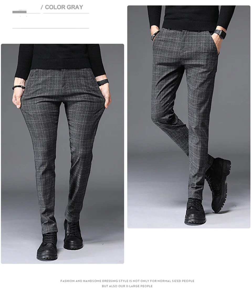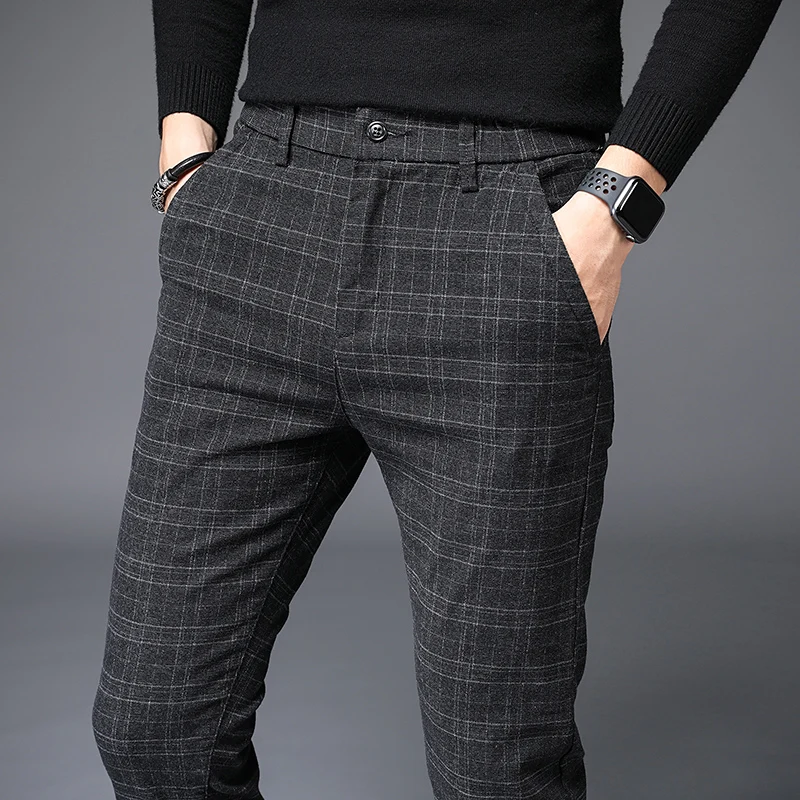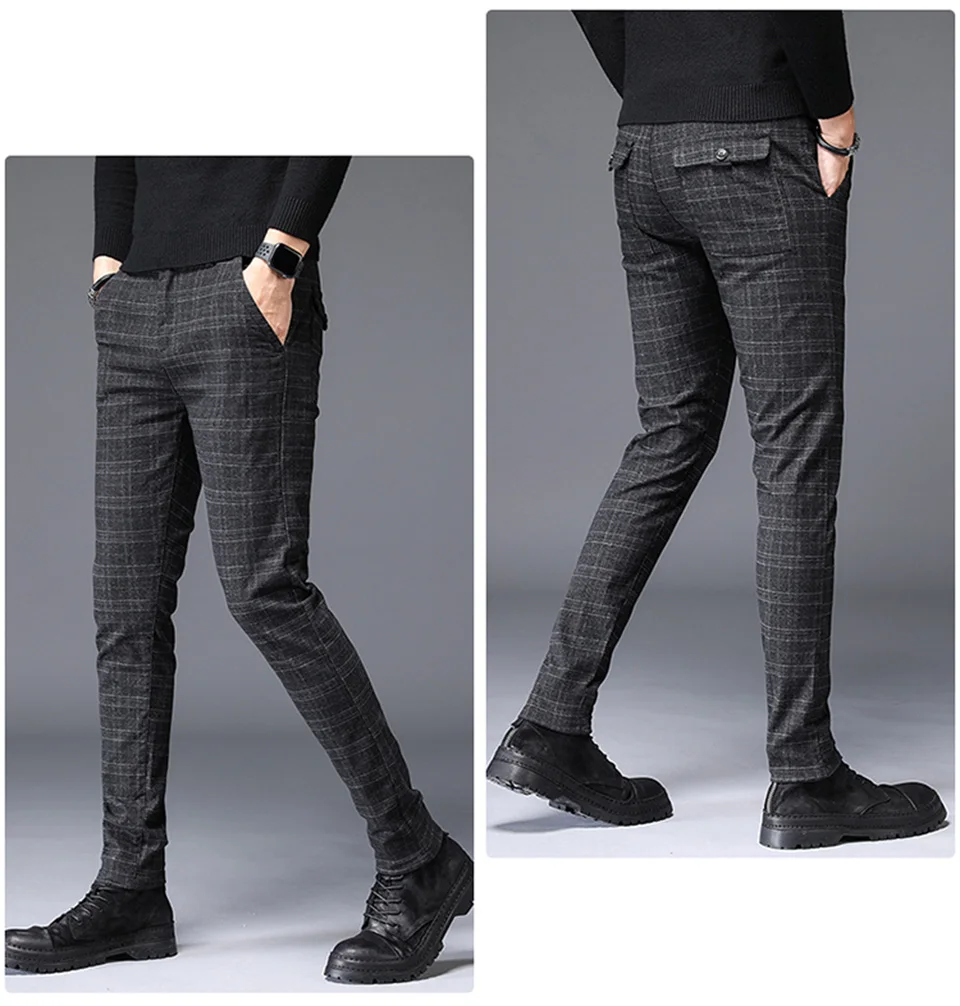 Осень-зима 2021, бархатные утепленные брюки HCXY для мужчин, клетчатые рабочие брюки в клетку, мужские облегающие теплые брюки-карандаш для мужчин