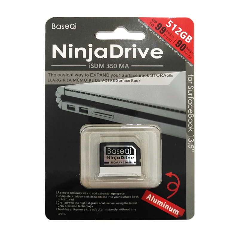 Алюминиевая высокоскоростная карта памяти BaseQi NinjaDrive 512 ГБ, SD-карта для Microsoft Surface Book 1315
