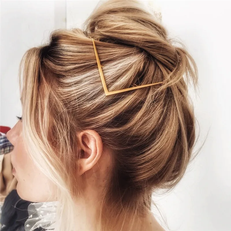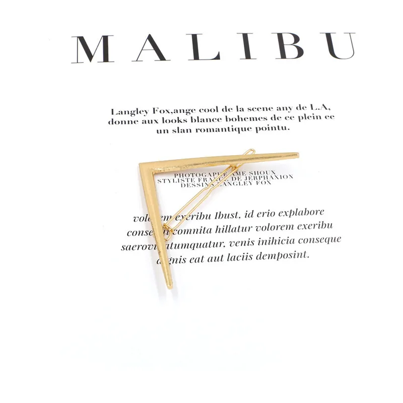 Простая заколка для волос для девочек, модный геометрический золотистый зажим для волос из сплава