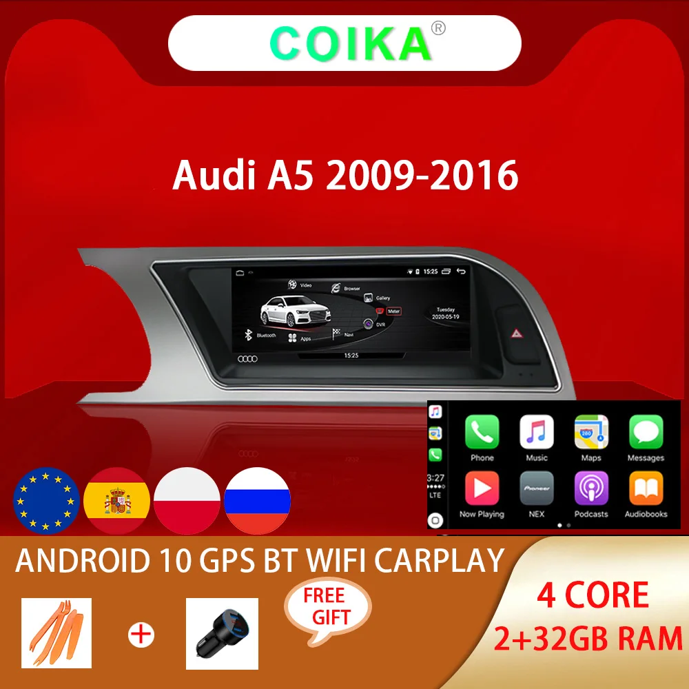 Система Android 10 автомобильный экран для Audi A5 09-16 WIFI Google 2 + 32 ГБ ОЗУ BT GPS Navi приемник сенсорный стерео плеер Carplay