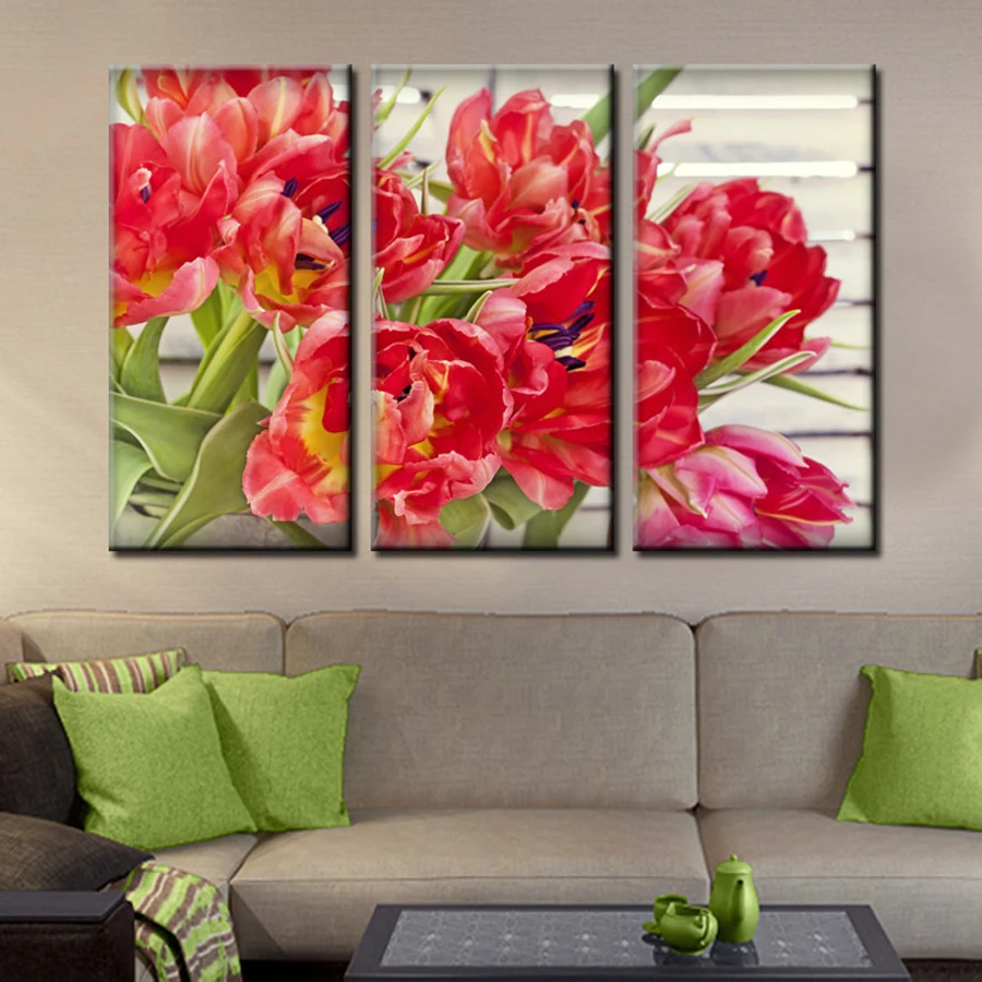 Алмазная вышивка "красный тюльпан", 5D, квадратная, круглая, алмазная вышивка, цветы, мозаика, Триптих, домашний декор, AA2292