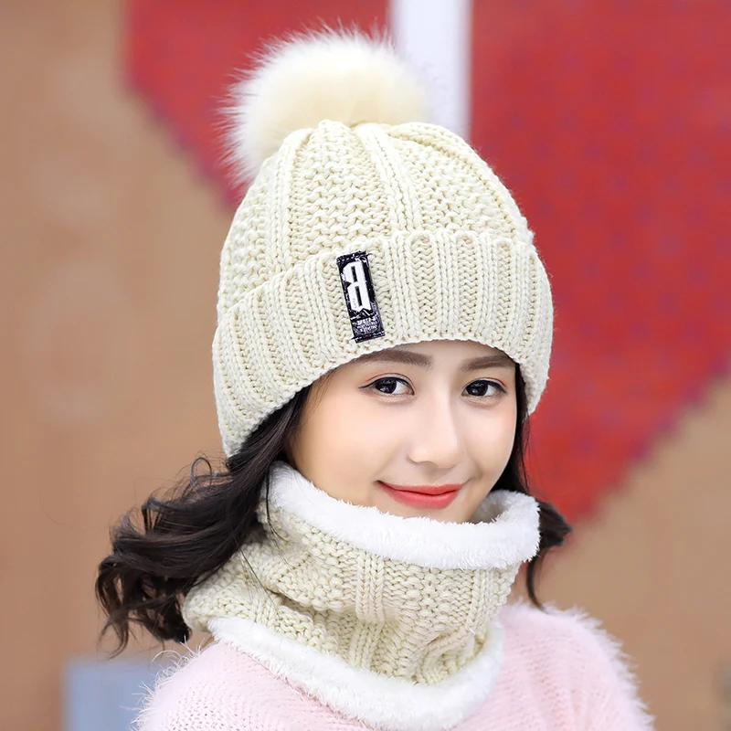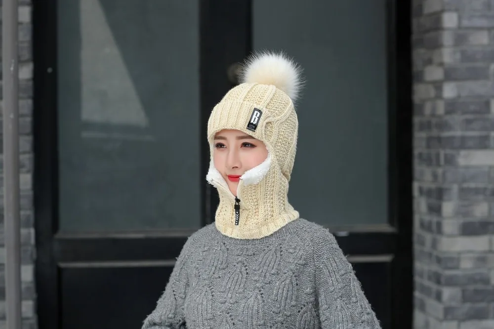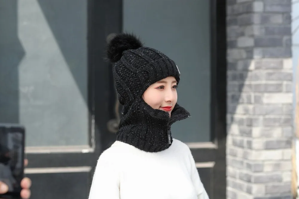 Шапка женская шерстяная, зимняя, ветрозащитная, с шарфом и воротником, в подарок девушке
