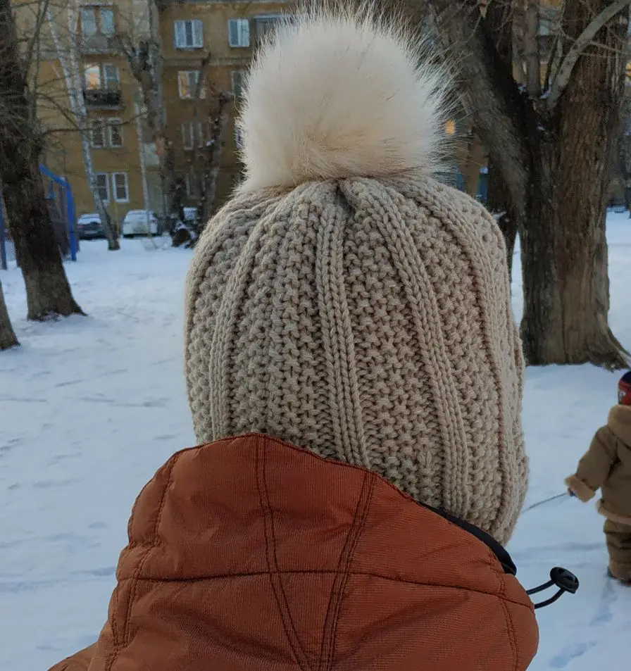 Эта третья шапочка для жены из этого магазина. Выглядит сразу на минус 20 лет. В обычных магазинах одни тётко - пенсионные варианты.