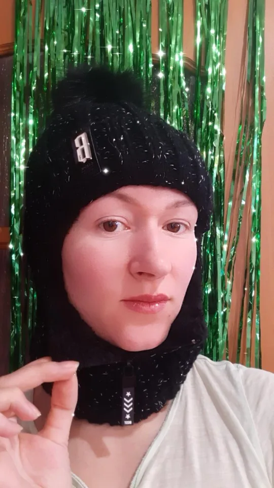 Шапка отличная, очень теплая, сейчас в Москве -18С и в ней тепло. Цвет очень нарядный. Всё нравится. Модель с молнией удобнее, чем такая же без, и более к лицу. Только замочек молнии немного холодит, подложки нет под ним.