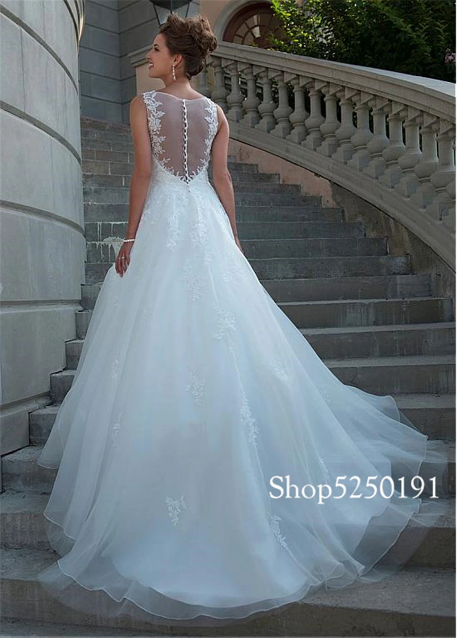 Шикарное Тюлевое платье трапециевидной формы с круглым вырезом и естественной талией, свадебное платье, Кружевная аппликация с фотоэлементами
