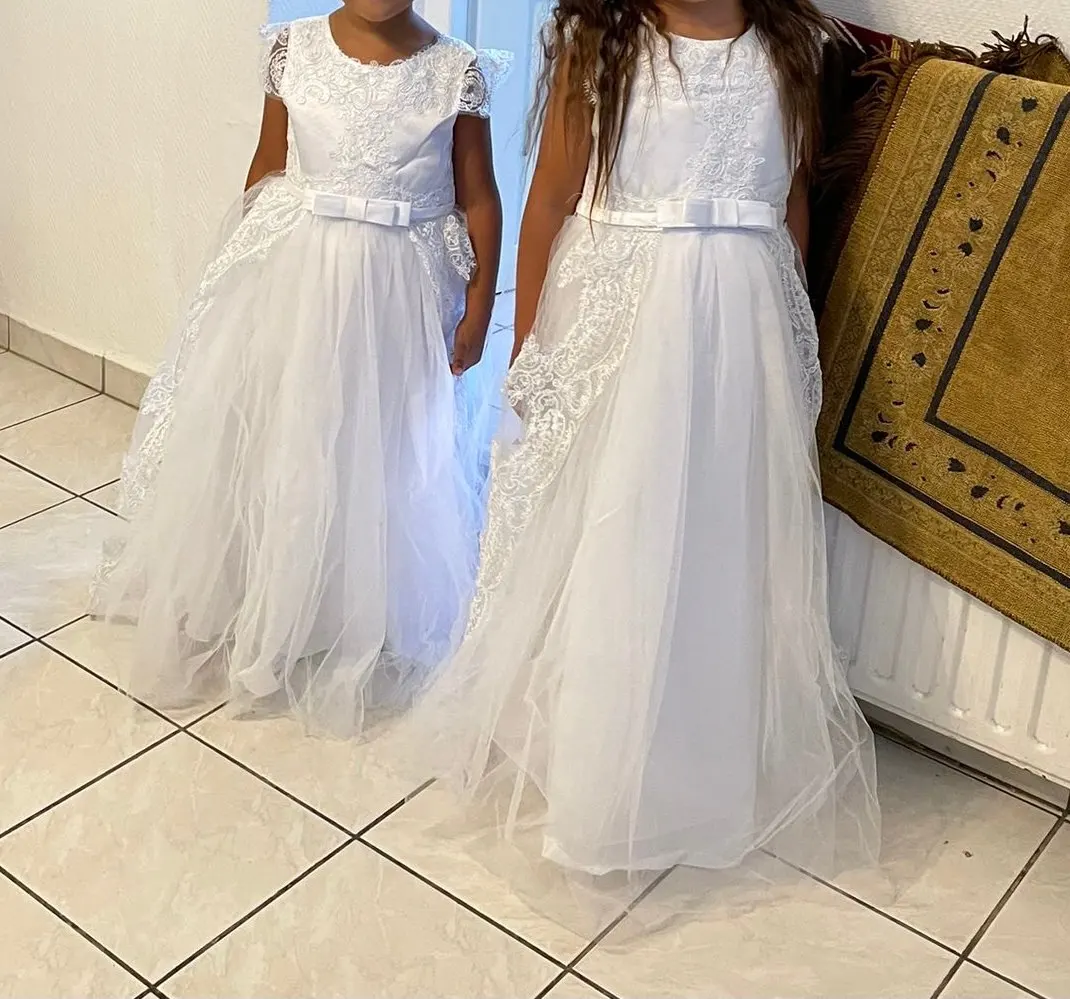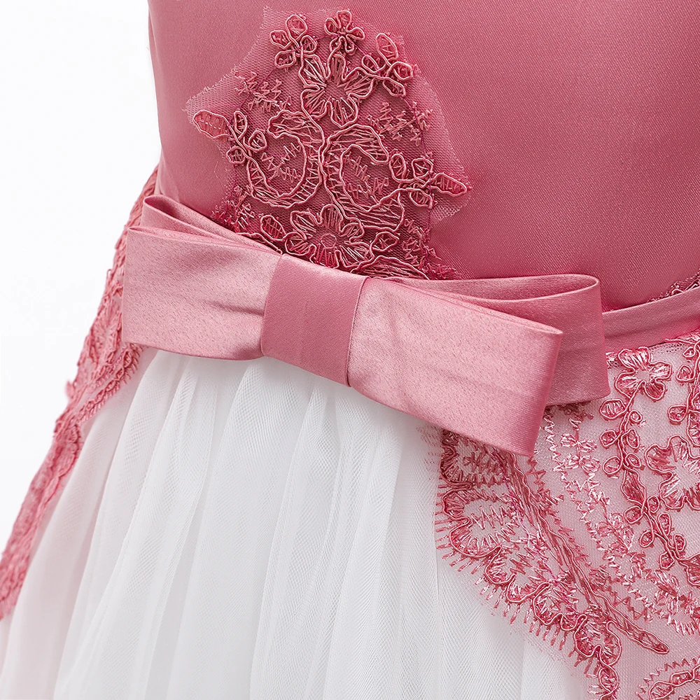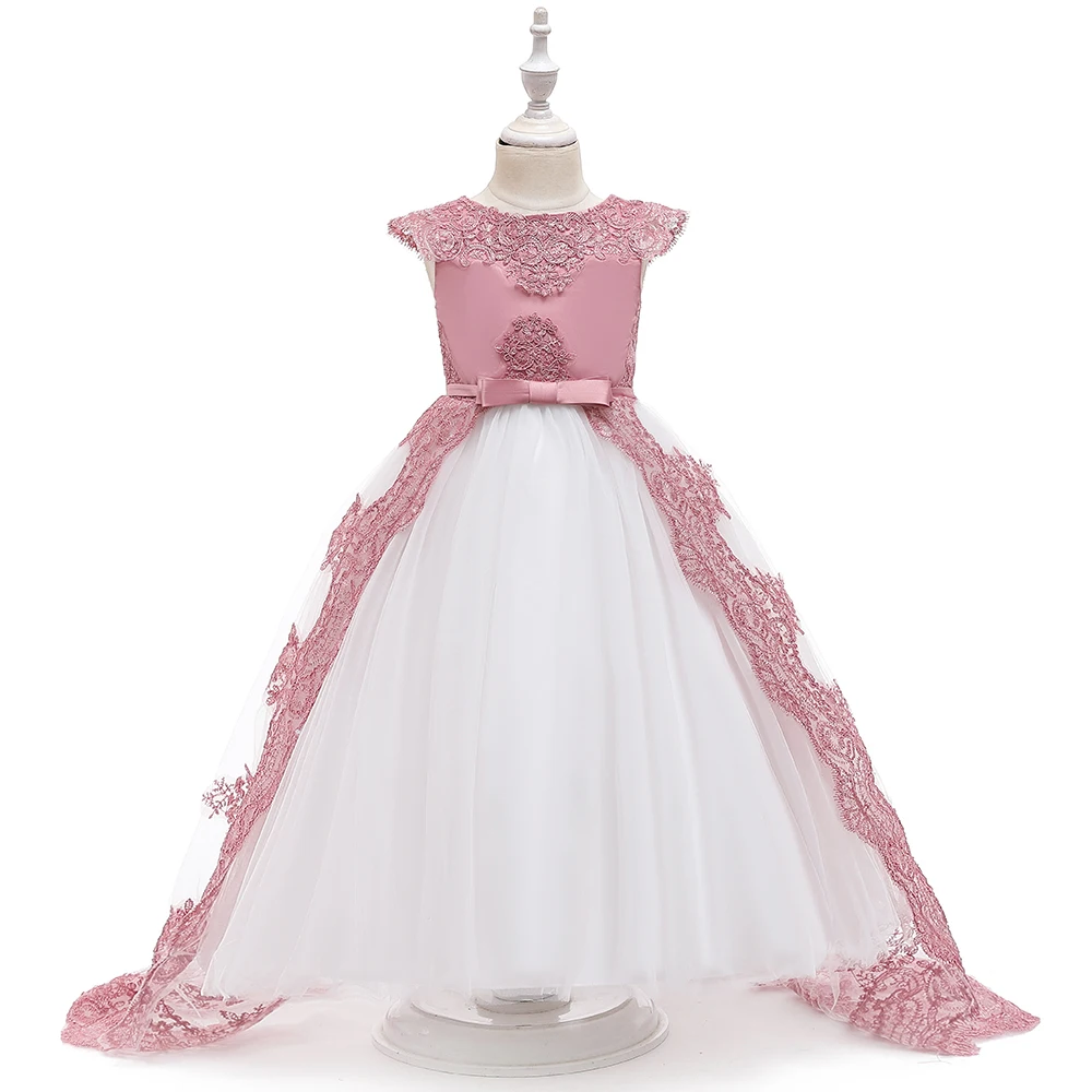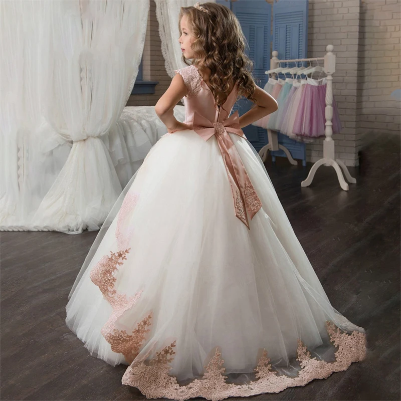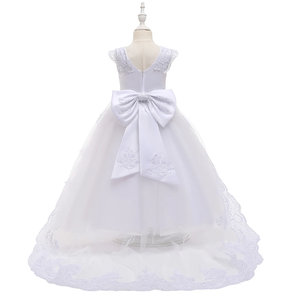 Белое платье подружки невесты для девочек, детское свадебное вечернее платье, кружевное платье с бантом и цветами для девочек, платье для дня рождения, детская одежда для выпускного