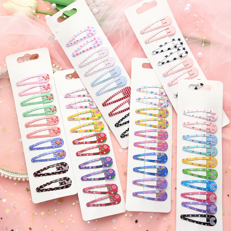 10 шт. новые милые высококачественные заколки для волос с принтом для детей, однотонные шпильки для волос для девочек, аксессуары