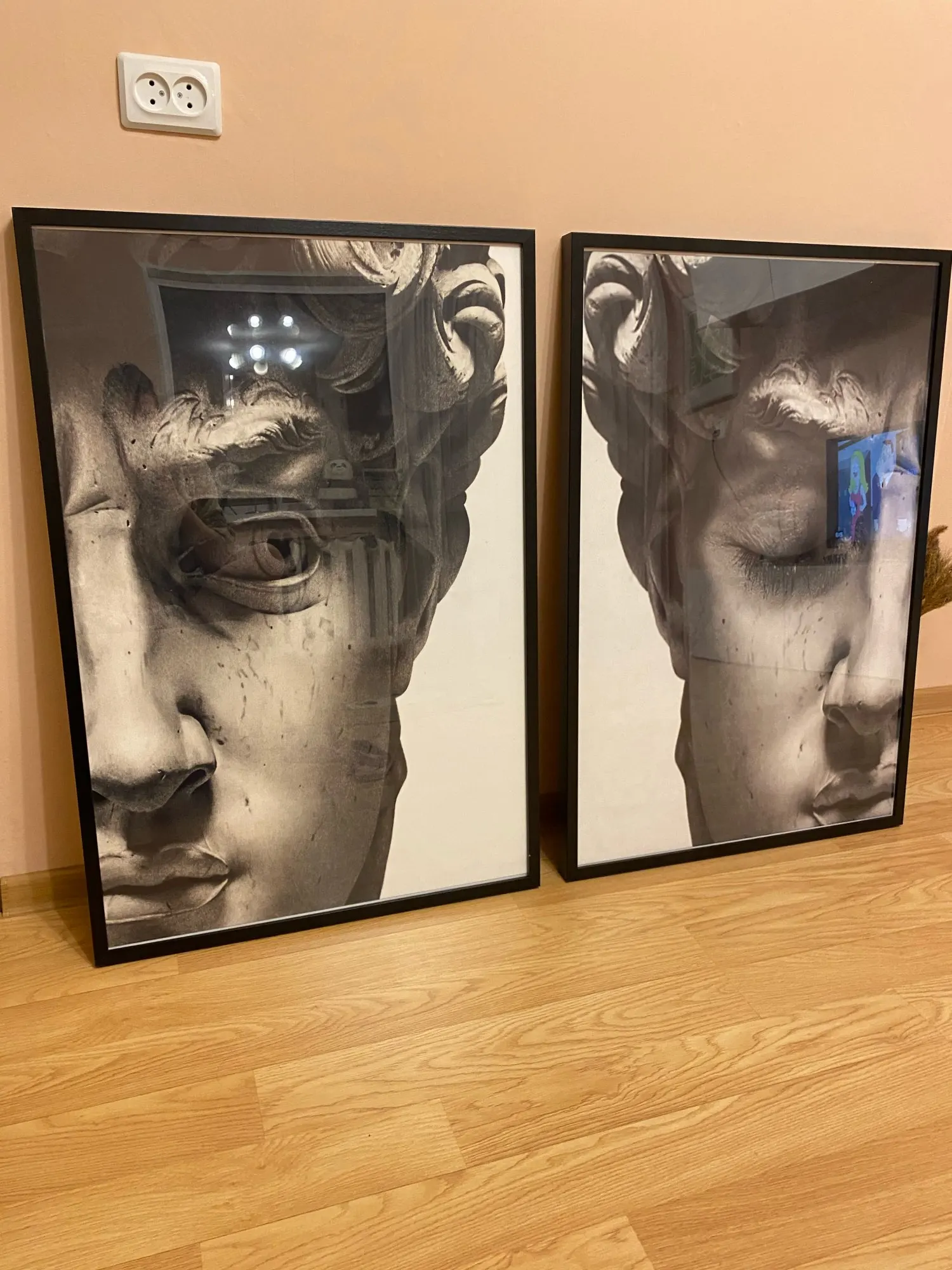 Хорошие картины, ПВХ, запах, но под рамкой подойдёт. Доставили курьером до дома