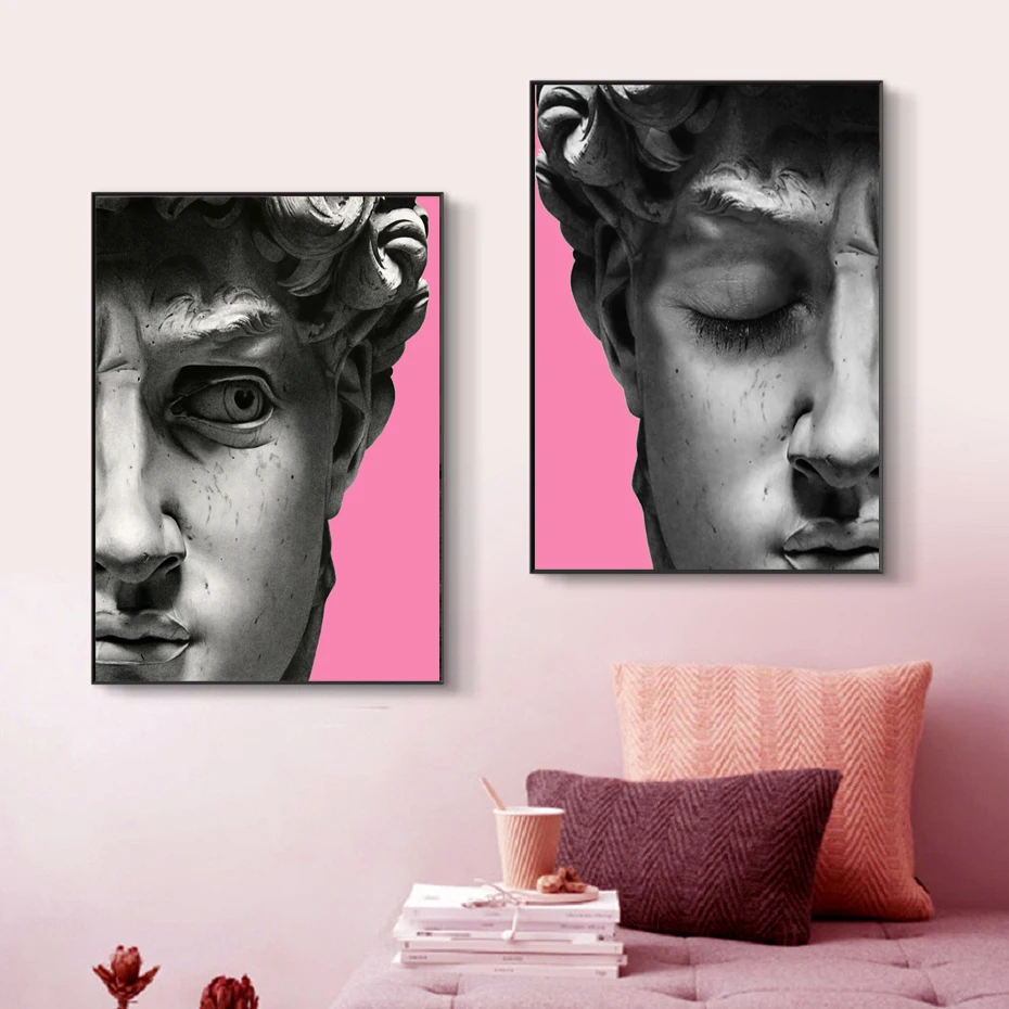Плакаты и принты в скандинавском стиле с изображением головы Давида черно-белого цвета, картины на холсте, картины для гостиной, украшения дома