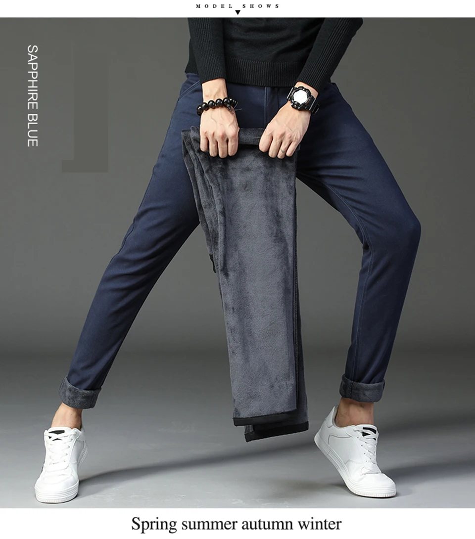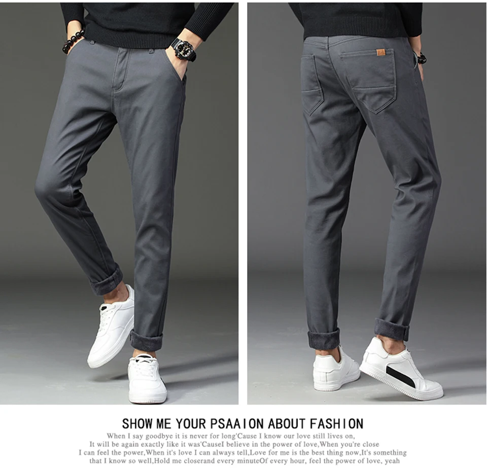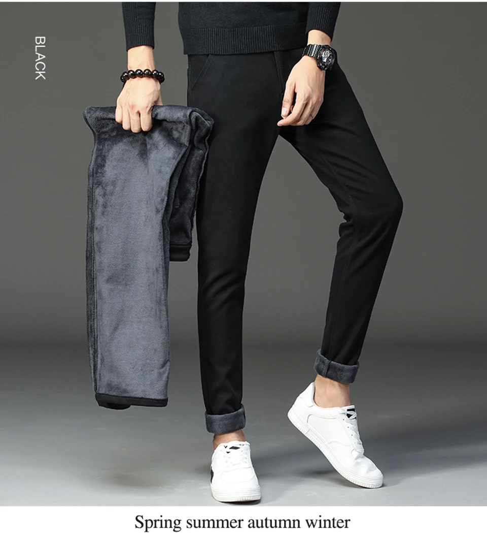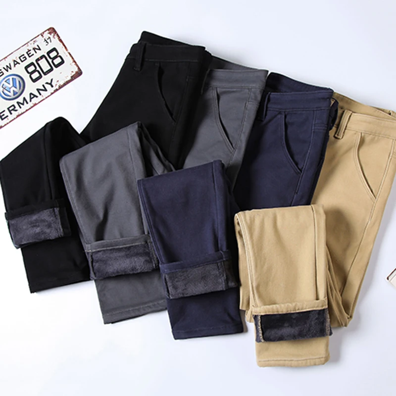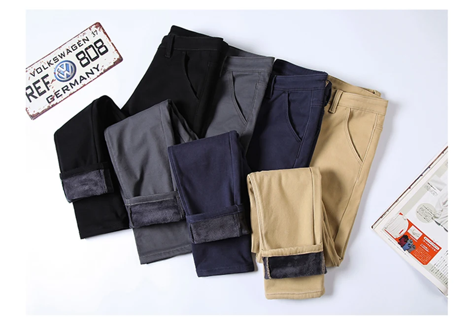 HCXY 2019 Осень Зима теплые мужские штаны Прямые повседневные толстые рабочие брюки мужские классические деловые модные штаны с мехом для мужчин