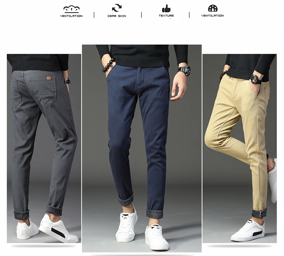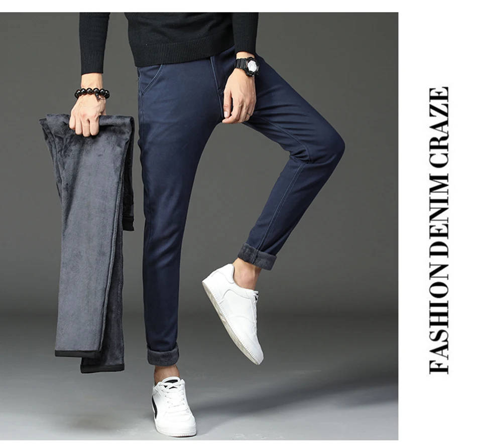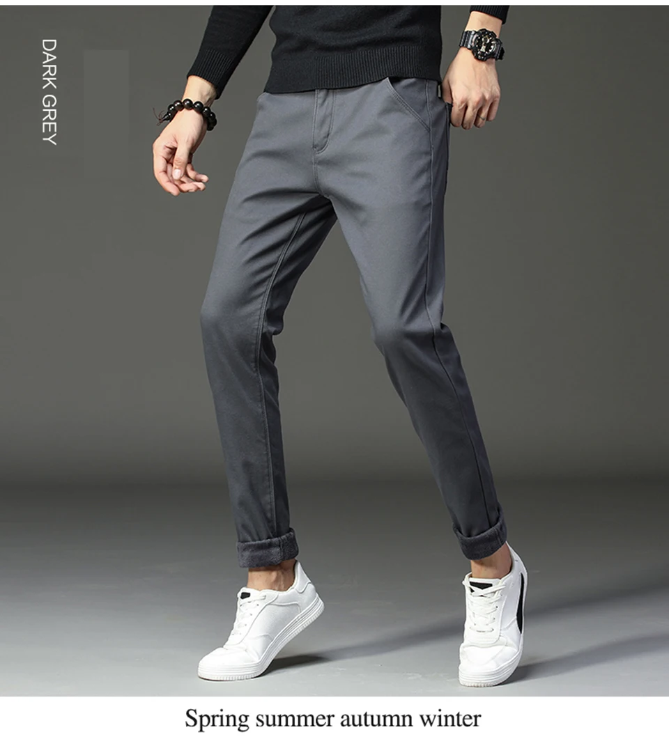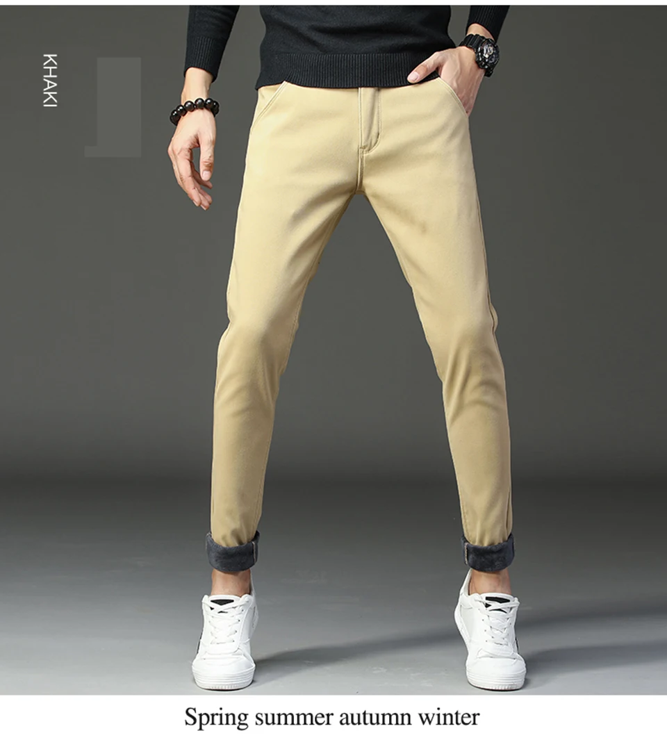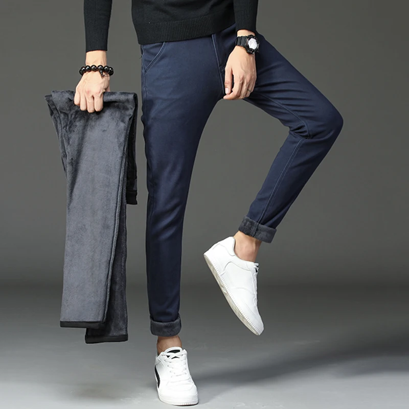 HCXY 2019 Осень Зима теплые мужские штаны Прямые повседневные толстые рабочие брюки мужские классические деловые модные штаны с мехом для мужчин