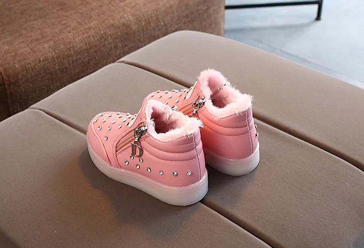 Детские кроссовки со светодиодами для девочек, плюшевые детские кро...