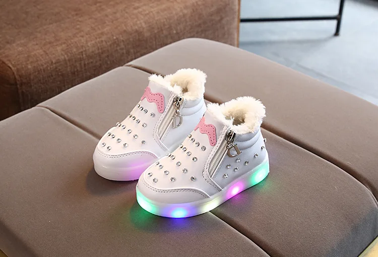 Зимние ботинки для девочек, детские кроссовки со светодиодами для д...