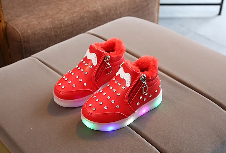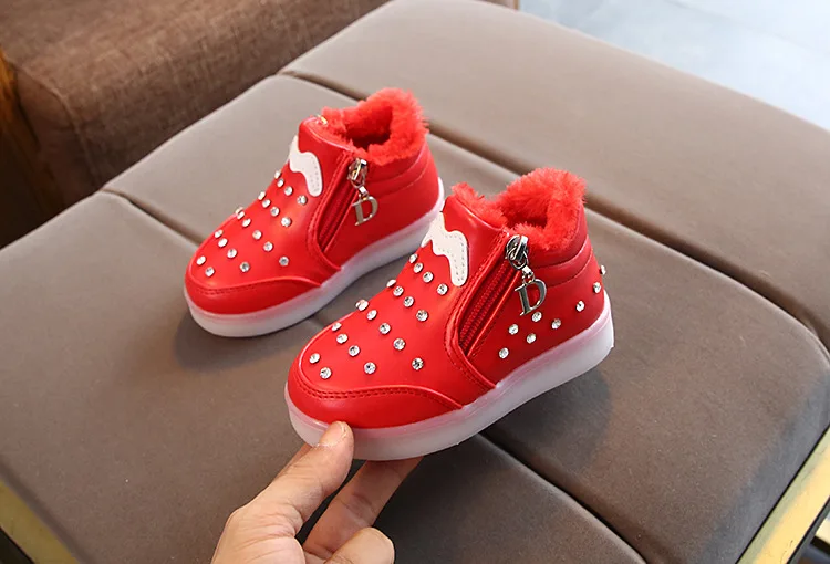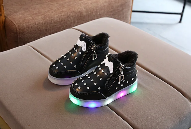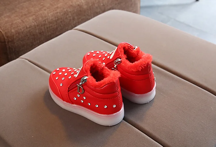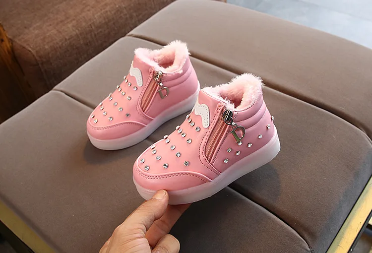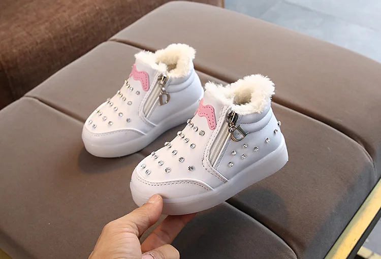 Меховые теплые детские ботинки на молнии с мультяшным рисунком, однотонные модные детские ботинки со стразами, высококачественные Симпатичные кроссовки для принцесс для девочек
