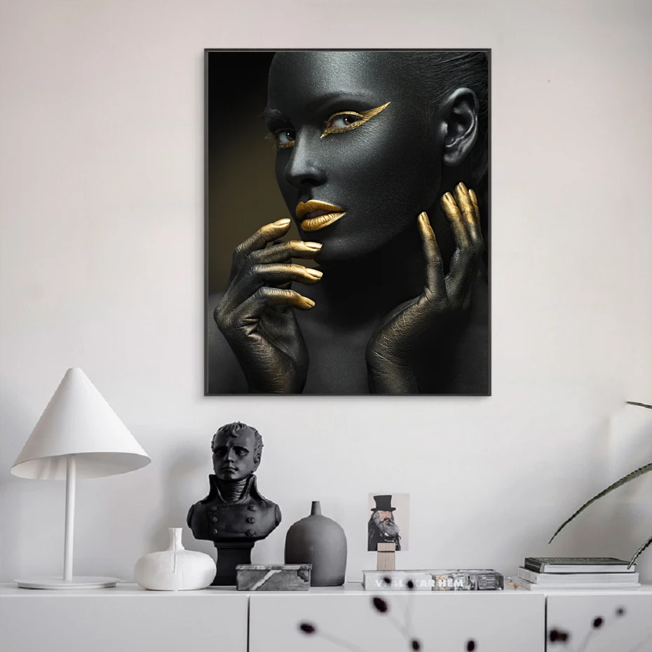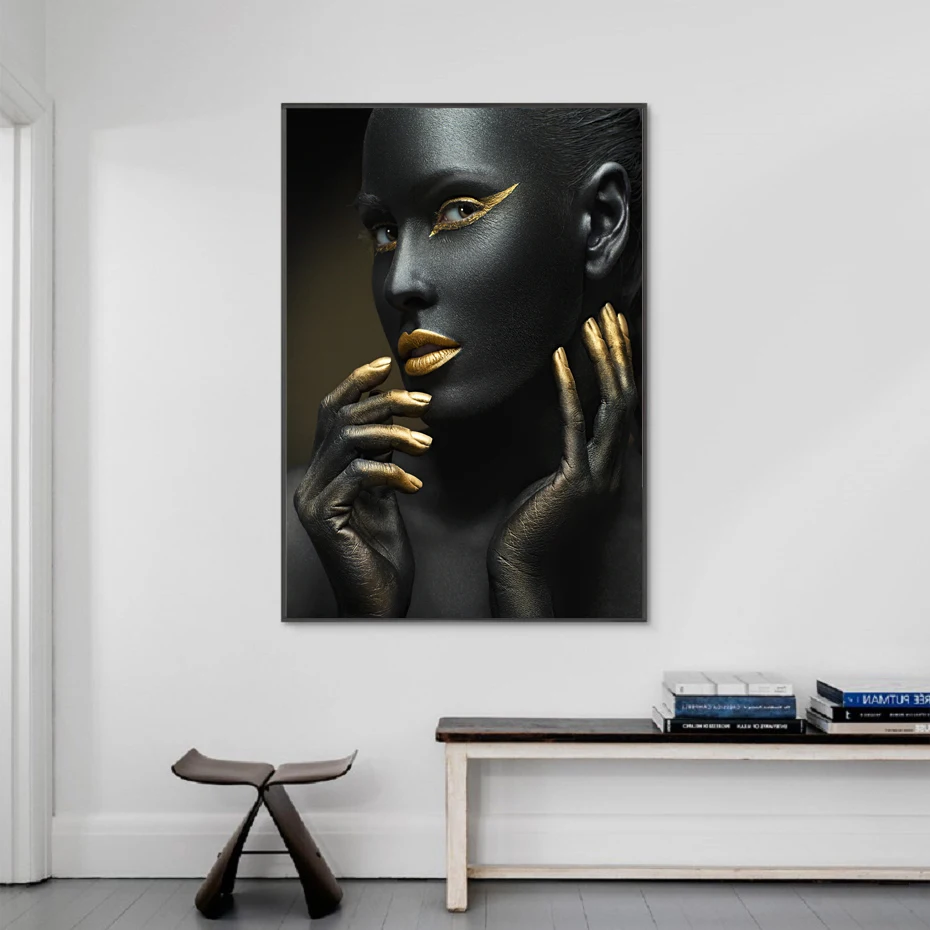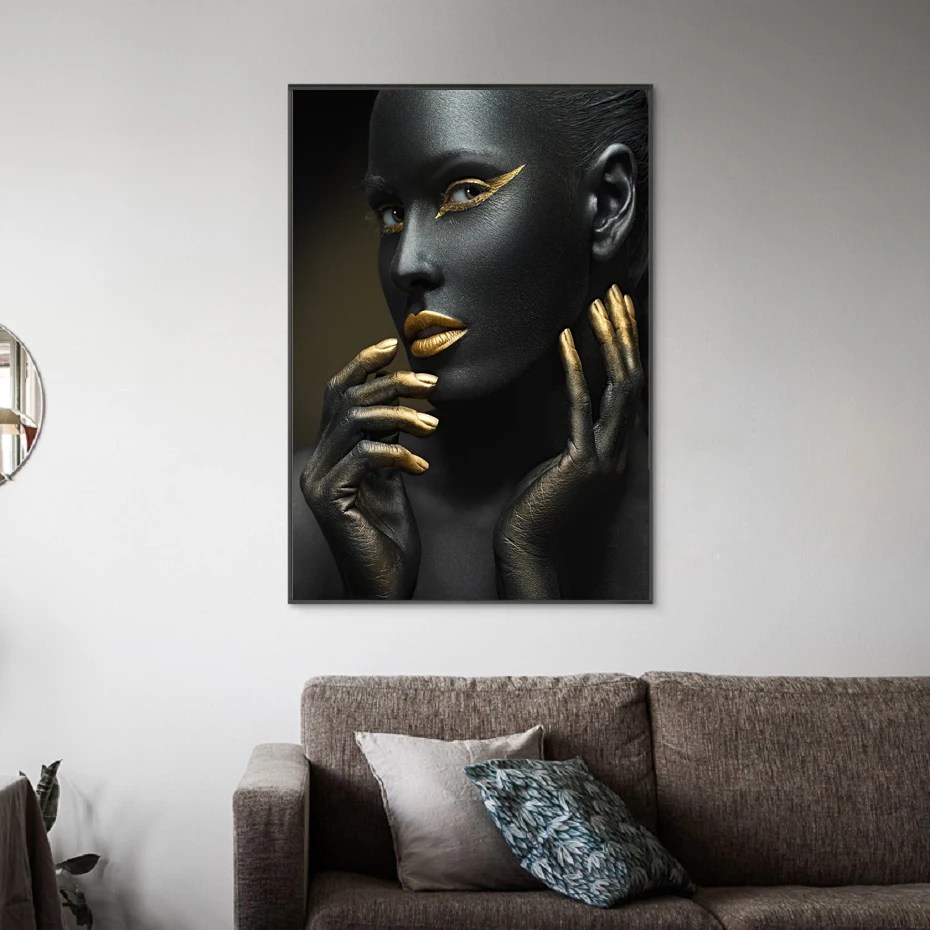 Nordic черный и золотой Африканская женщина модель Плакаты и принты фигурный настенный художественный холст Картины фотографии Гостиная домашний декор