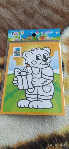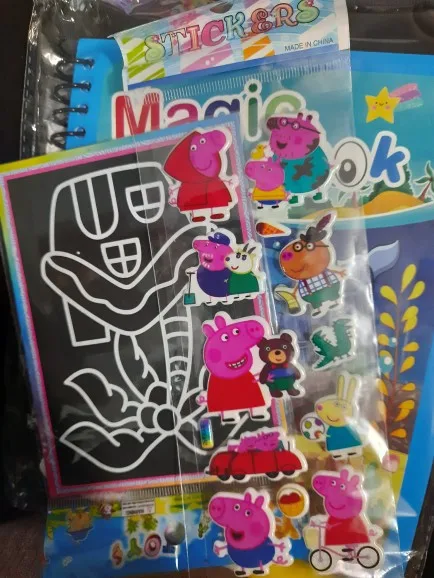 Пришла разукрашка в отличном состоянии. Продавец ещё вложил как подарок разукрашка с пандой и краба на пляже, ещё наклейки с пепой. Огромная благодарность)