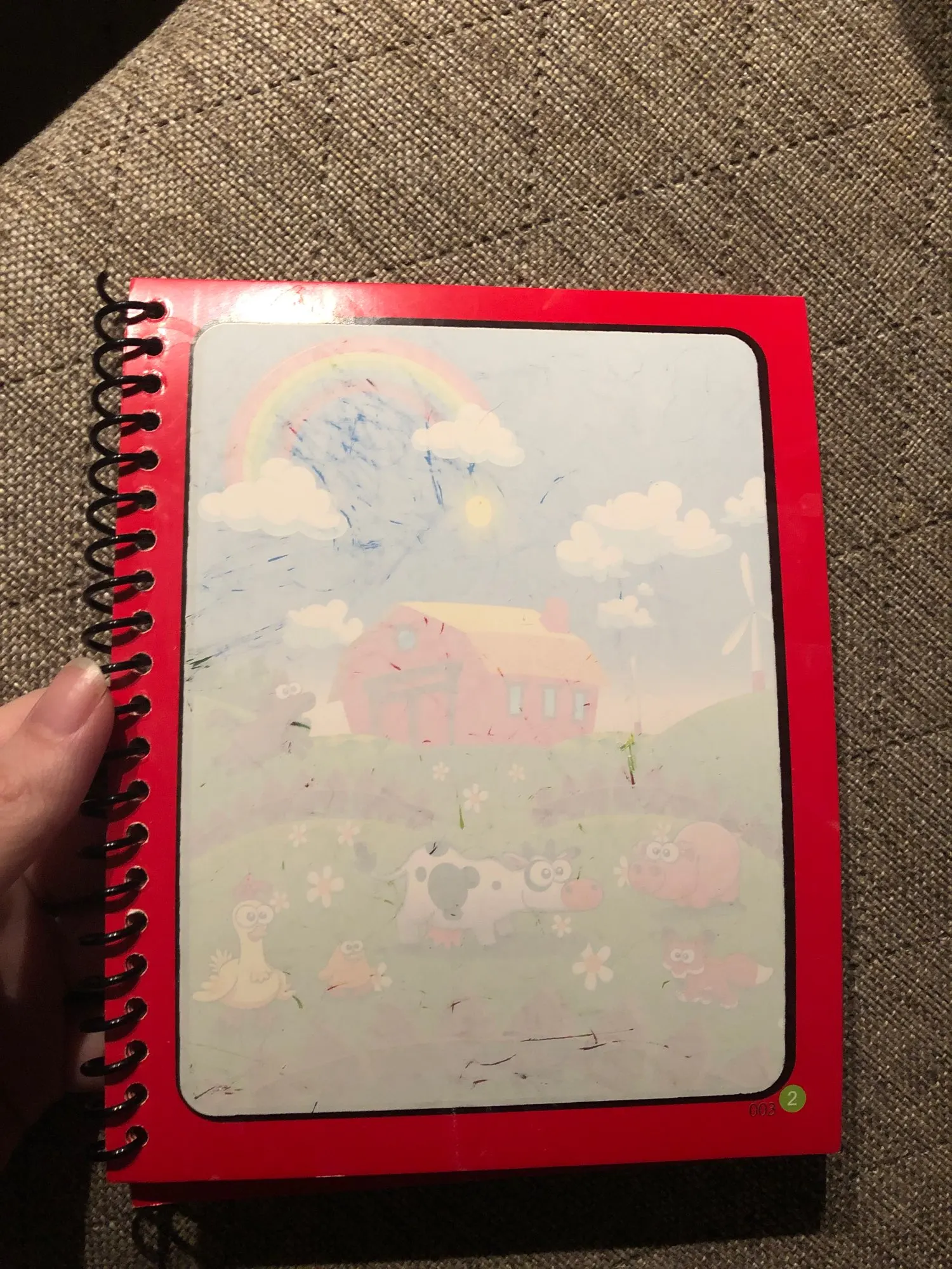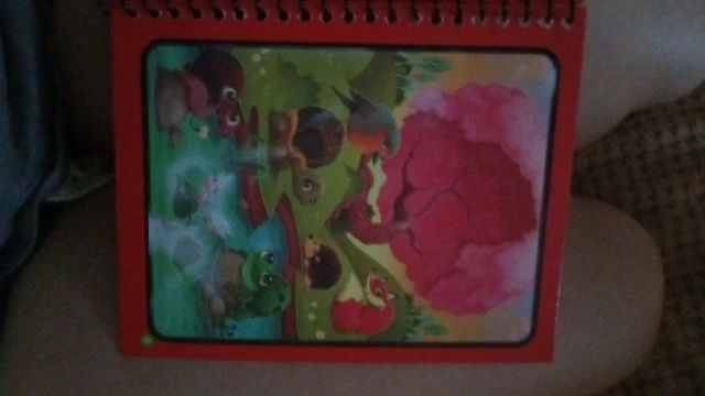 спасибо продавцем за подарочек. книжка классная, яркая. но имейте ввижу, что если малыш ещё не умеет контролировать силу нажатия, то верхний слой может портится.