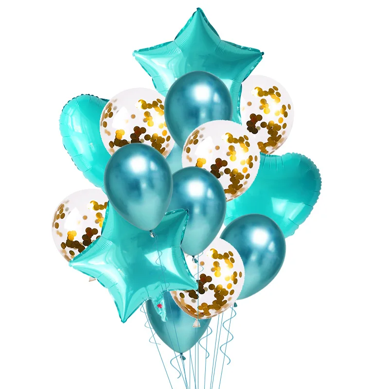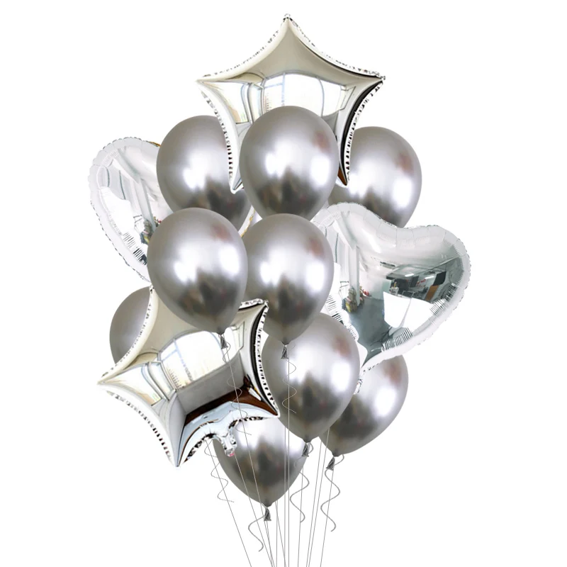 Шары воздушные латексные, золотистыесеребристые, в форме сердца, 14 шт.набор