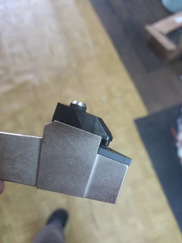 Качество хорошее. Правда прижим пластины выполнен не так, как на фото. Он не черный, а никелированный, задней частью опирается не на клиновую плоскость, а на два наклонных глухих отверстия соответствующими выступами. Но идея та же, одновременно пластина и прижимается к плоскости и притягивается в угол. тем самым пластина ставится однозначно и четко.