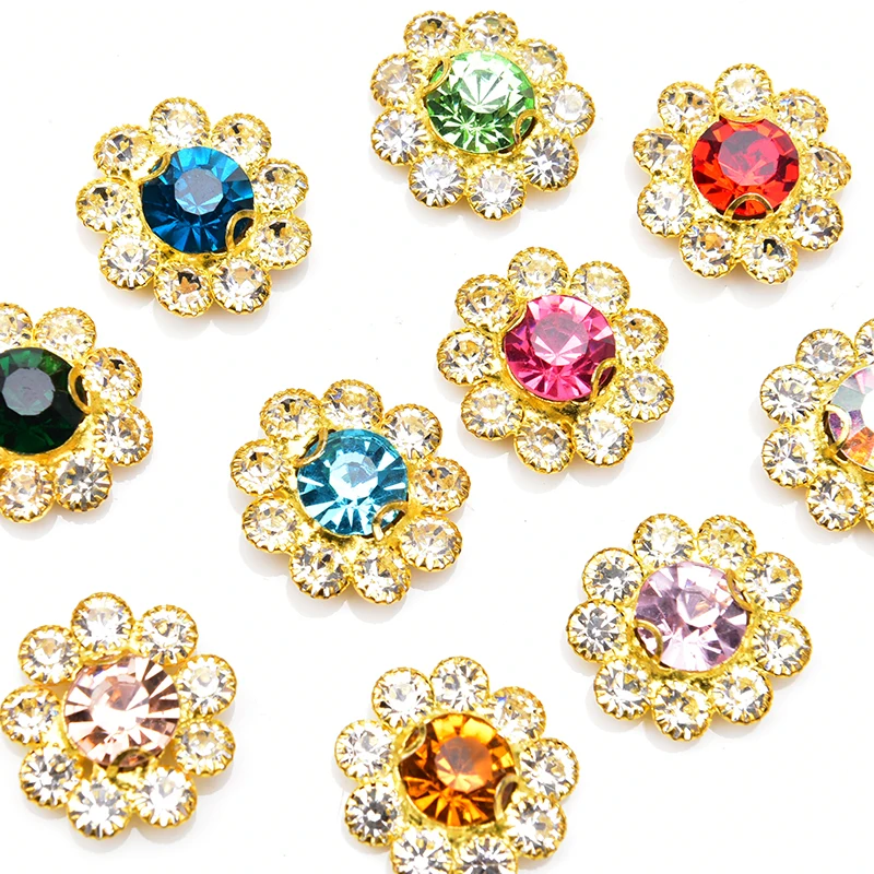 10 шт. Стеклянные Цветы Стразы с золотой основой для шитья свадебного платья украшения DIY аксессуары