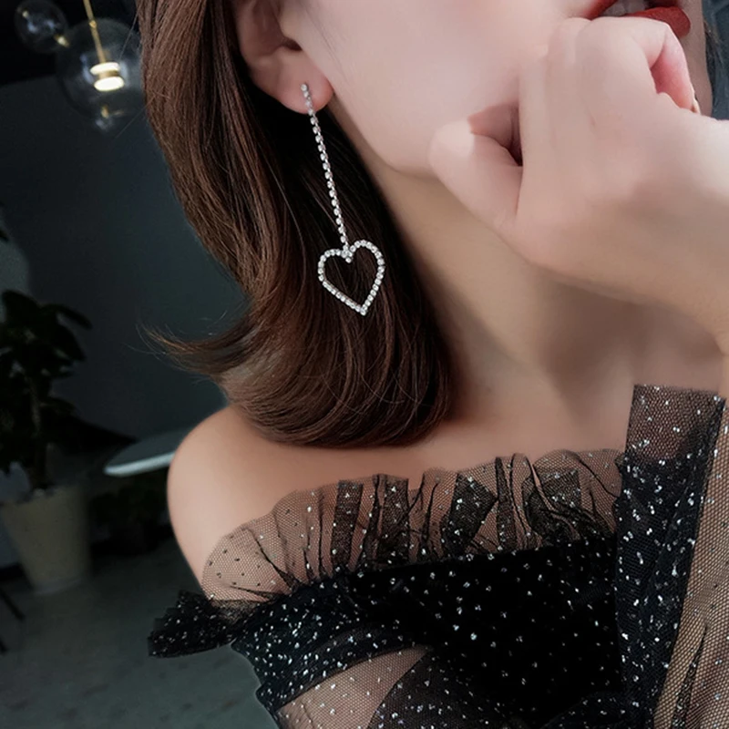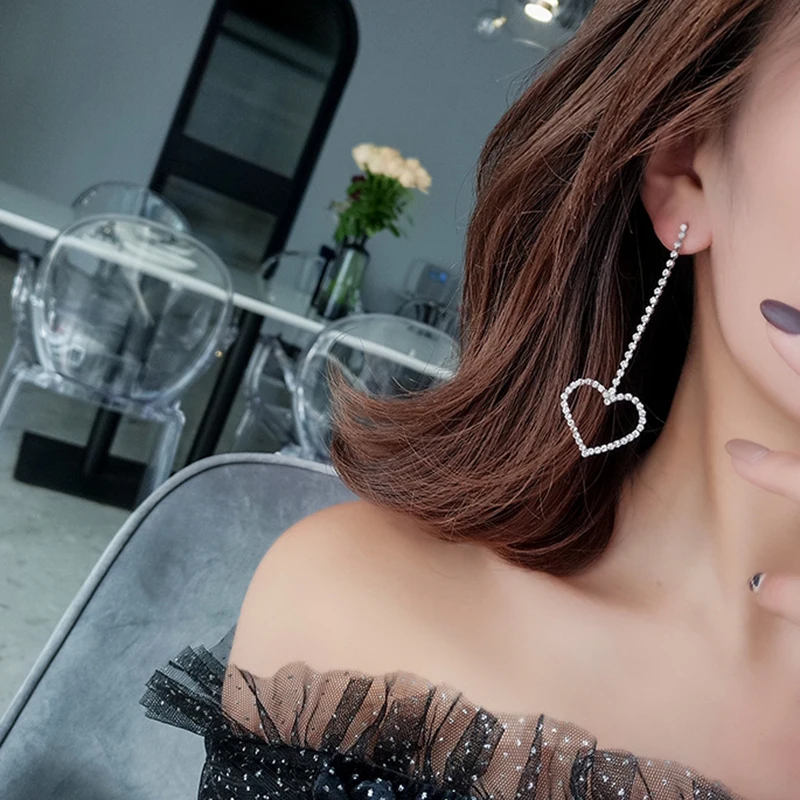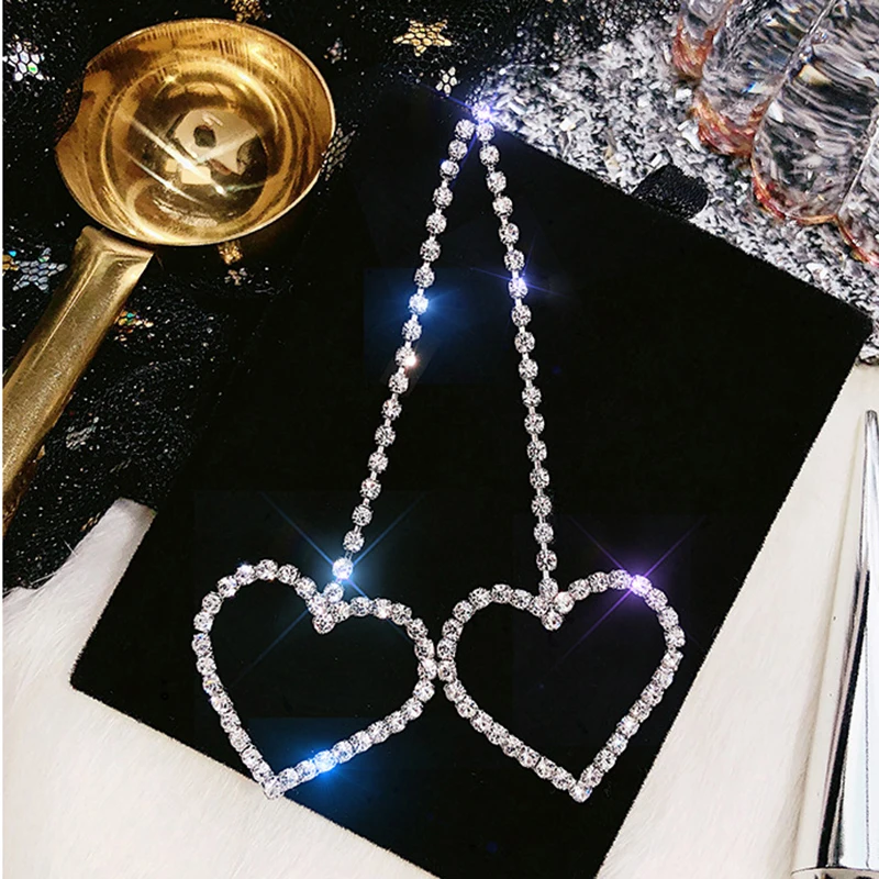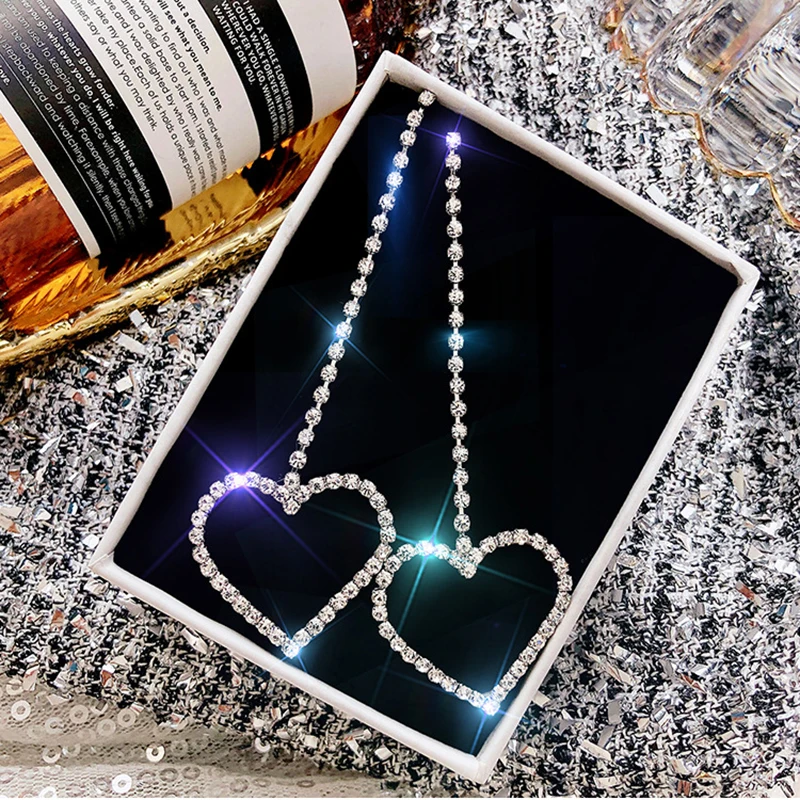 Длинные Роскошные серьги Стразы для женщин большое сердце кристалл простые корейские эффектные Висячие свадебные серьги ювелирные изделия для вечерние Ринок