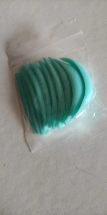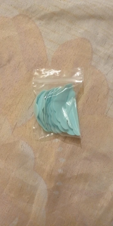 продавец отправил товар сразу, но из-за проблем с логистикой доставили только сейчас. эти штуки размера М и они как раз идеально подошли. материал - резина, и благодаря этому они держатся на веках. в действии ещё не пробовала, но выглядят красиво. всего их 10 штук, думаю надолго хватит
