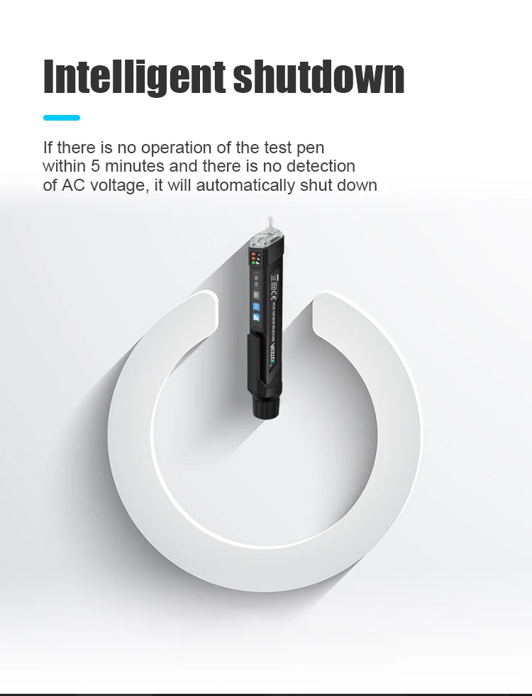 Если в течение 5 минут не будет работать тестовая ручка и не будет обнаружено напряжение переменного тока, она автоматически выключится
