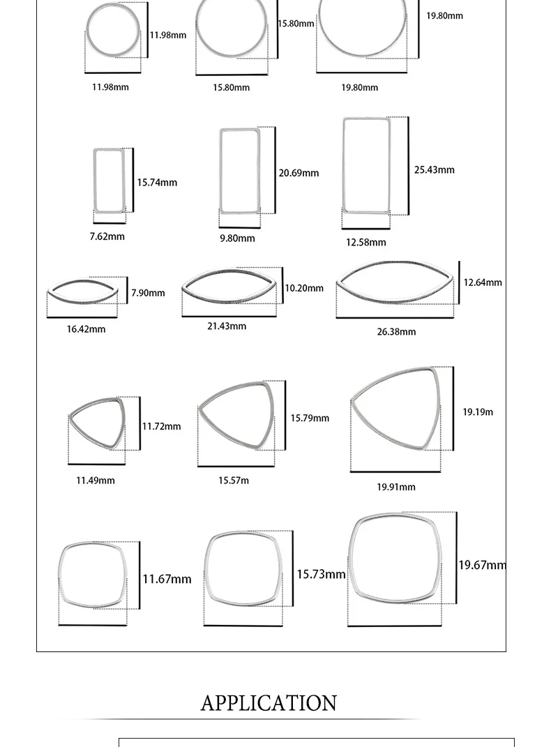 Размер: высота 13-21 мм, ширина 14-22 мм, толщина 0,85-0,95 мм