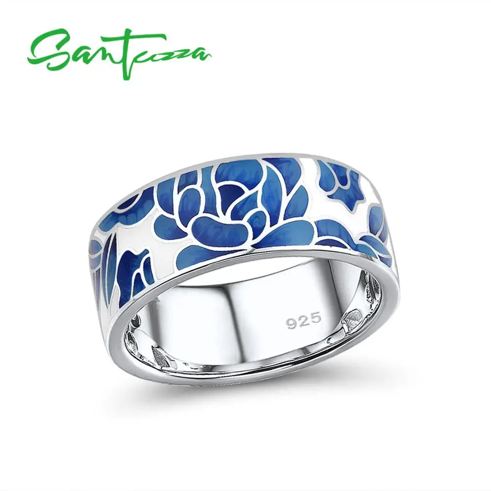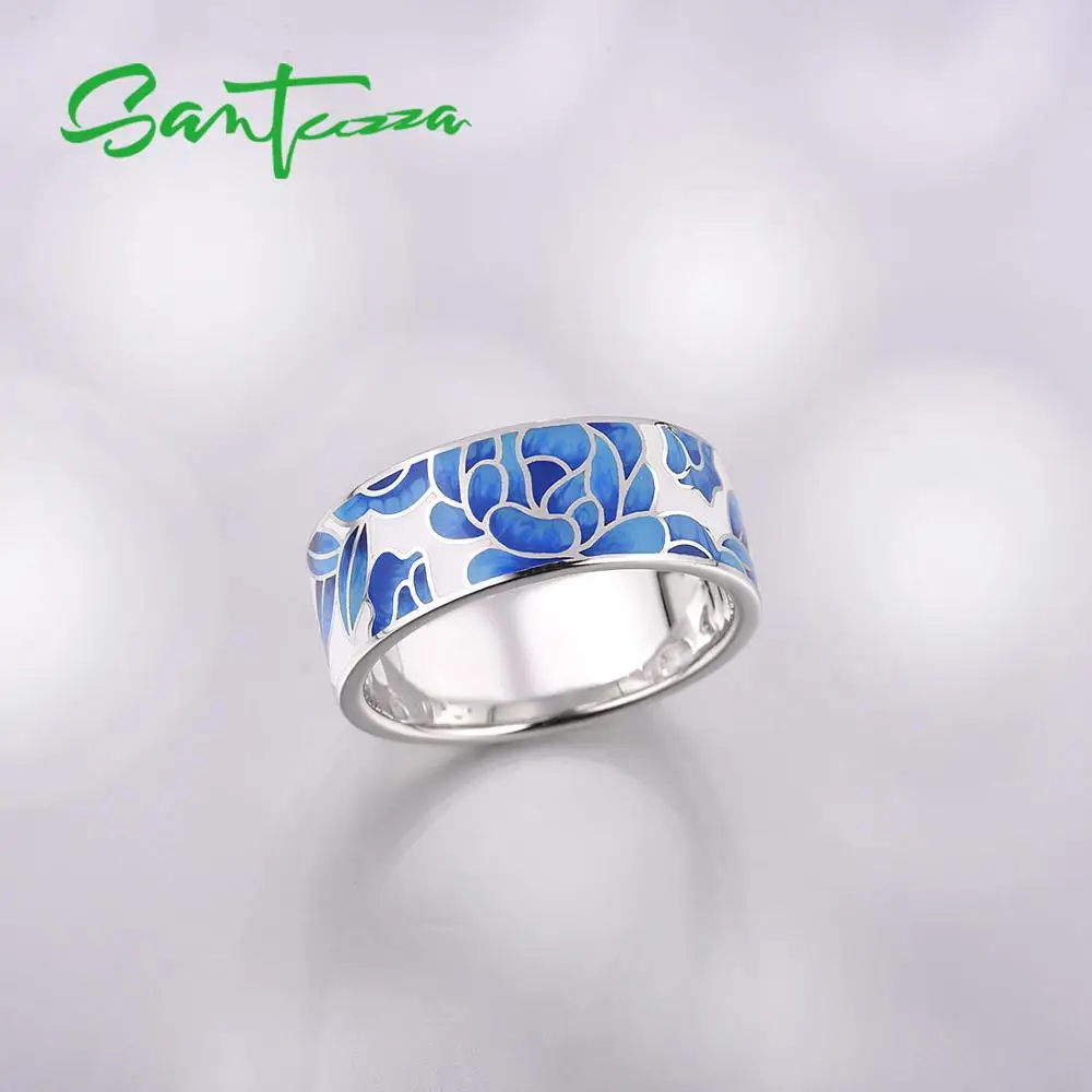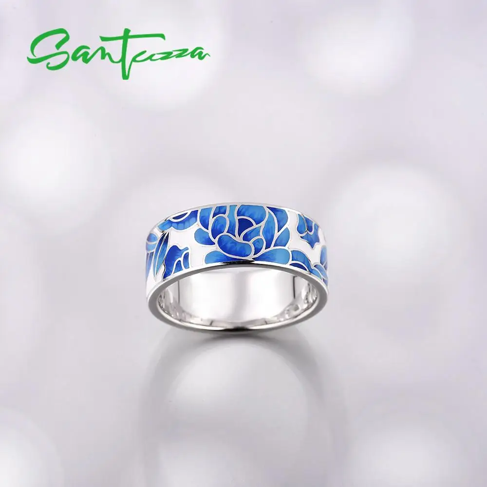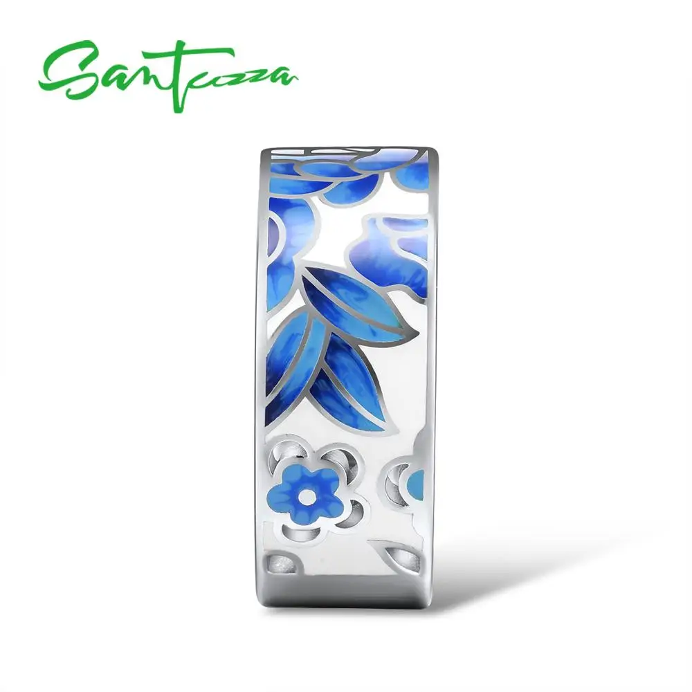 Женское серебряное кольцо SANTUZZA, из серебра 925 пробы с синими цветами и эмалью, изящная Подарочная бижутерия ручной работы