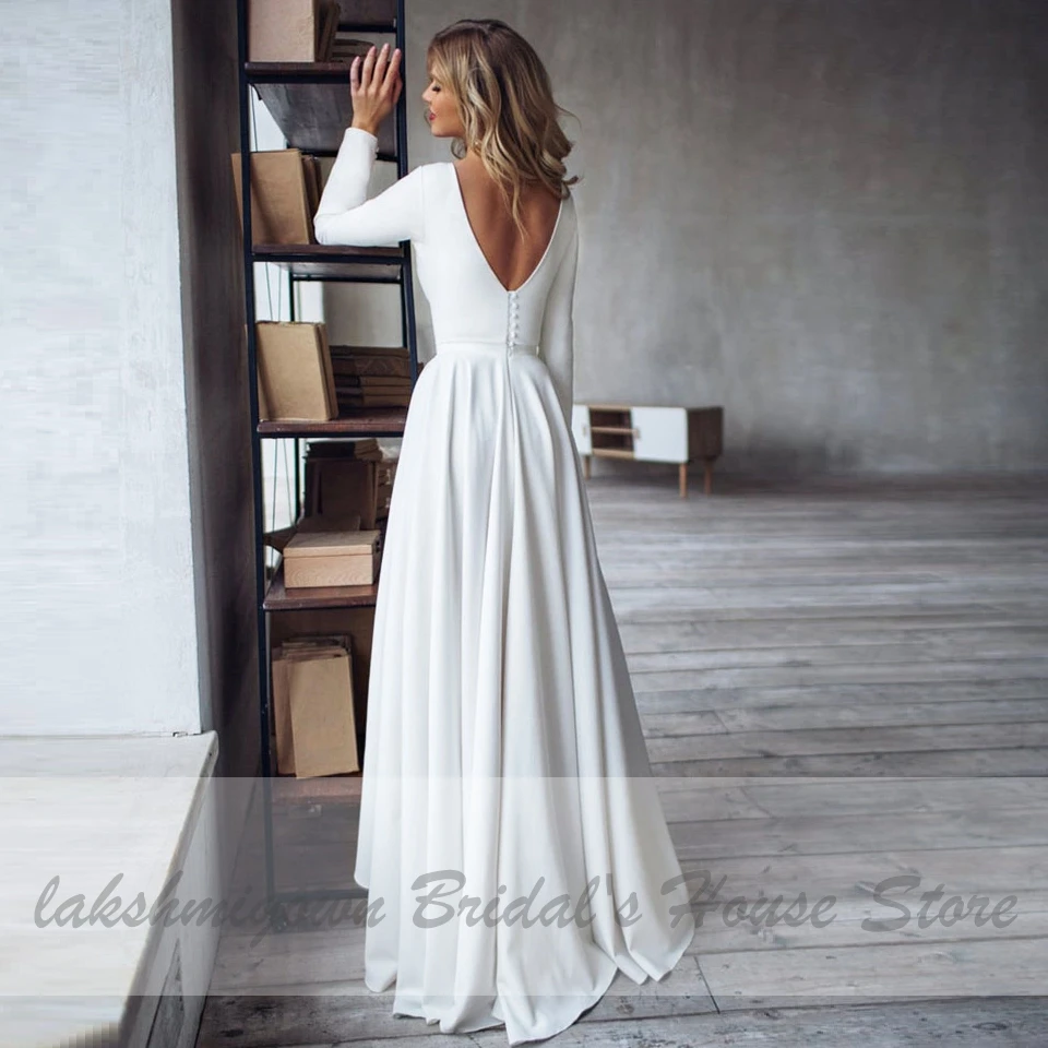 Шикарное свадебное платье Lakshmigown в стиле бохо, атласное Привлекательное платье-трапеция с V-образным вырезом на спине, свадебное платье с длинными рукавами, 2020