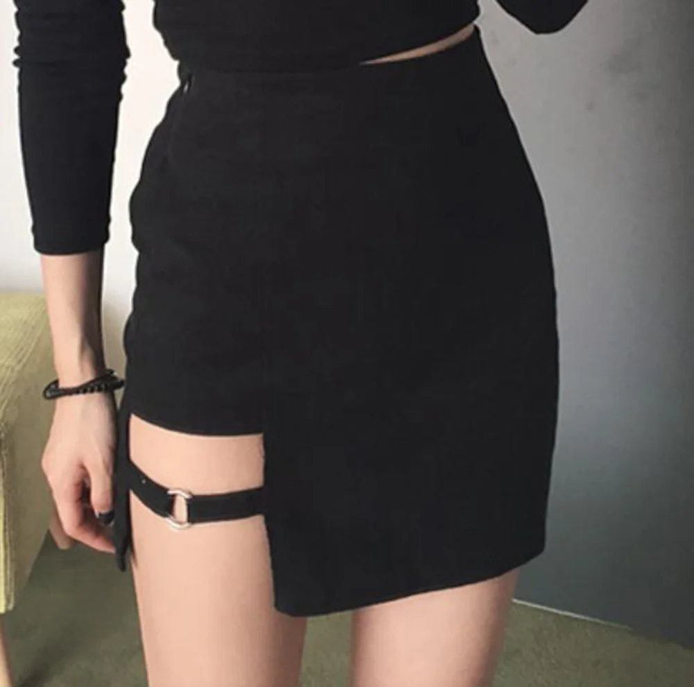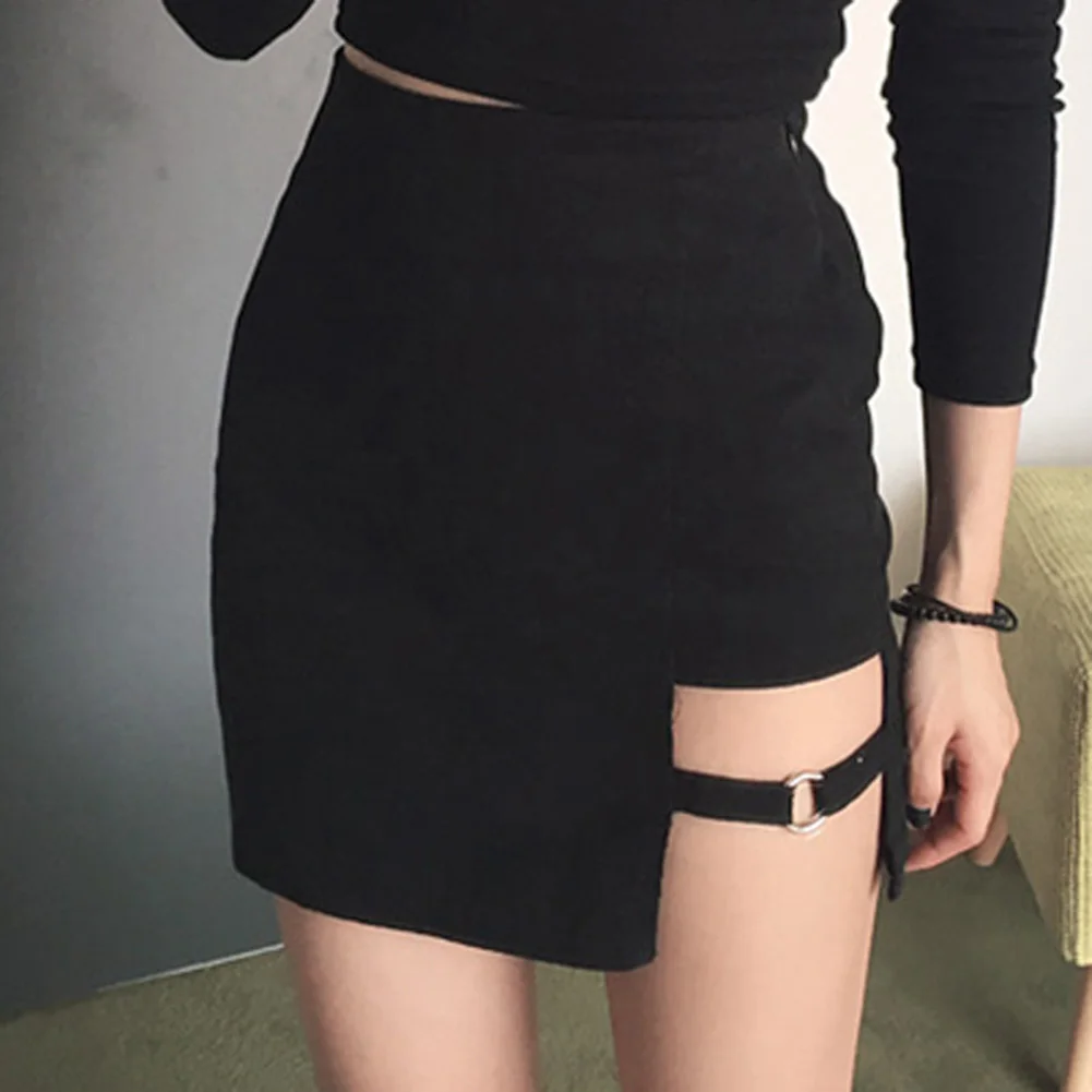 Модная женская хлопковая однотонная облегающая Асимметричная мини-юбка с поясом