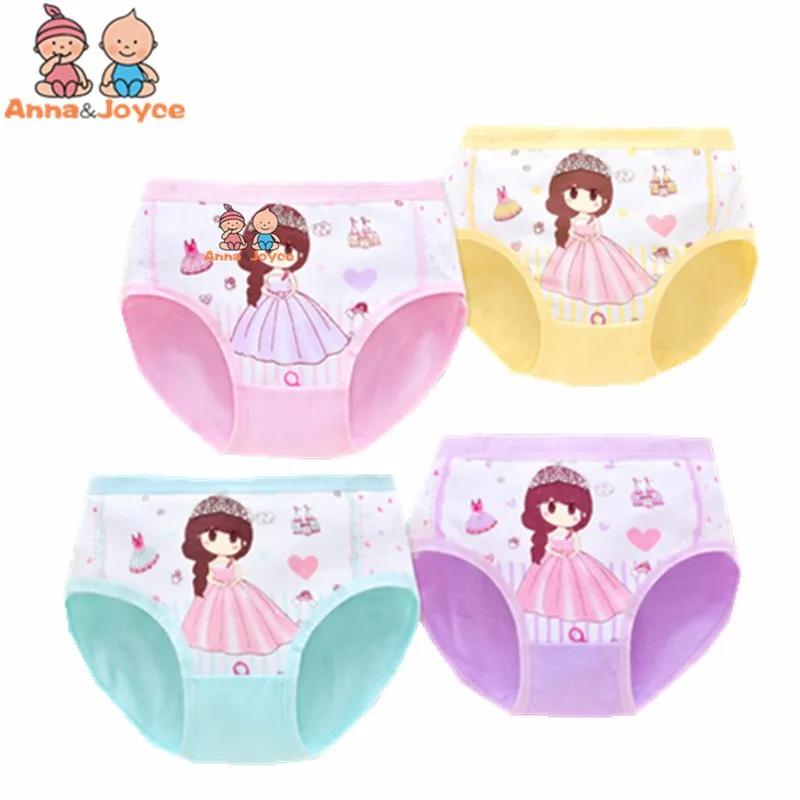 4 шт.лот хлопковые Мультяшные трусики, детское нижнее белье, трусики для девочек с цветочным рисунком