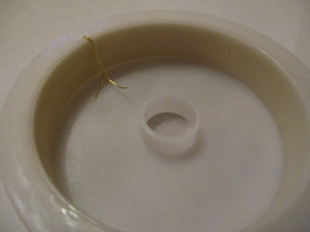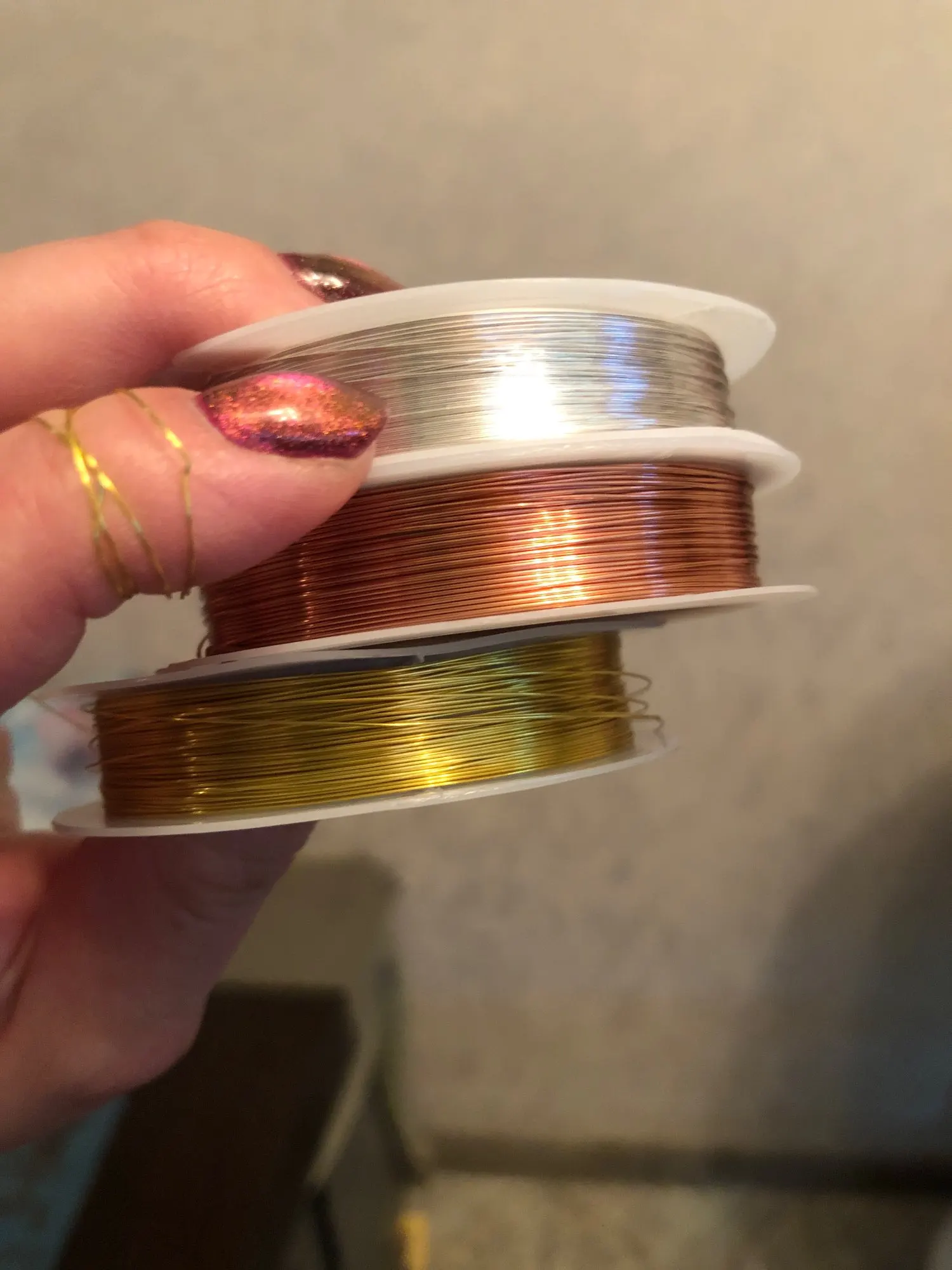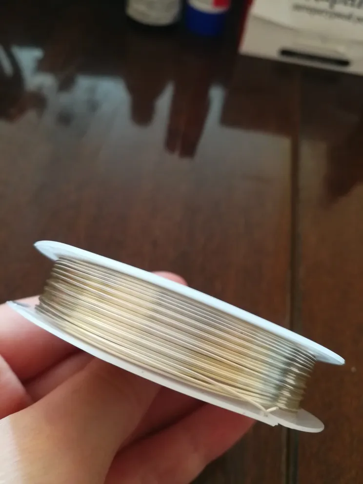 Цвет очень прочный! Я использую кольцо, сделанное с этим проводом в течение почти двух недель, и оно противостоит золотому воде и мылу, гидроалкоголическому Гелю... Он устойчив, но в то же время гибкий, прост в обращении. Он только отслаивается от частей, где плоскогубцы открываются или повреждают провод. Под золотом он серебристый. Настоятельно рекомендую!