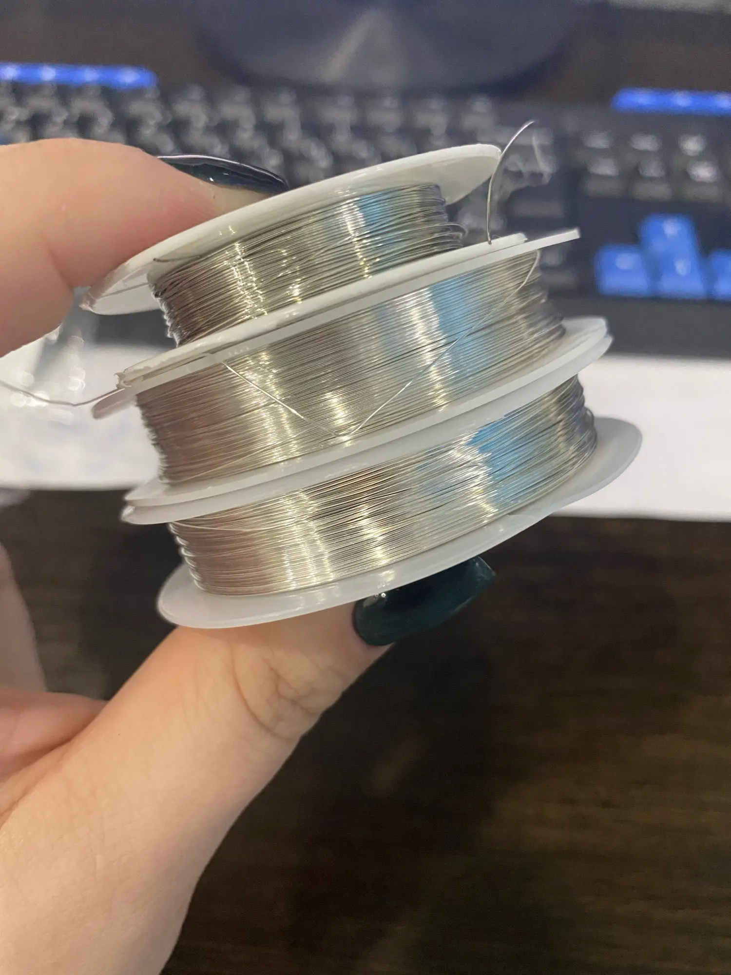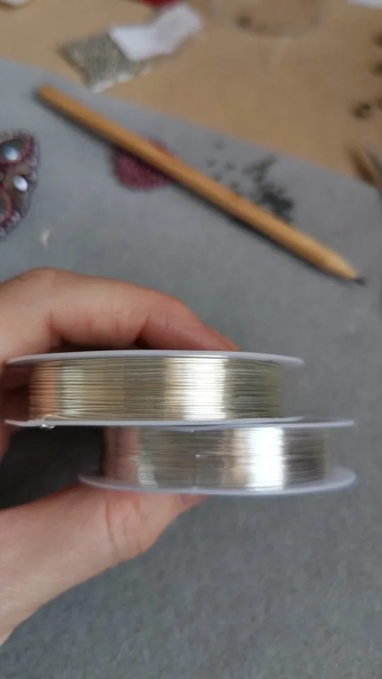 Заказ дошёл за 10 дней до Новосибирска. Качеством довольна. Заказывала по рекомендации- говорят данная проволока не темнеет со временем. Я ещё не успела проверить, будем надеяться что это так. Цвет красивый, светлое серебро. Для сравнения сделала фото с Gamma - обе серебро, но разница очевидна. По плетению мне так же понравилась (слева beadia, справа gamma). EN: good quality, comfortable in use. Very nice silver colour - see photo for comparison to other wire (“Gamma” manufacturer).