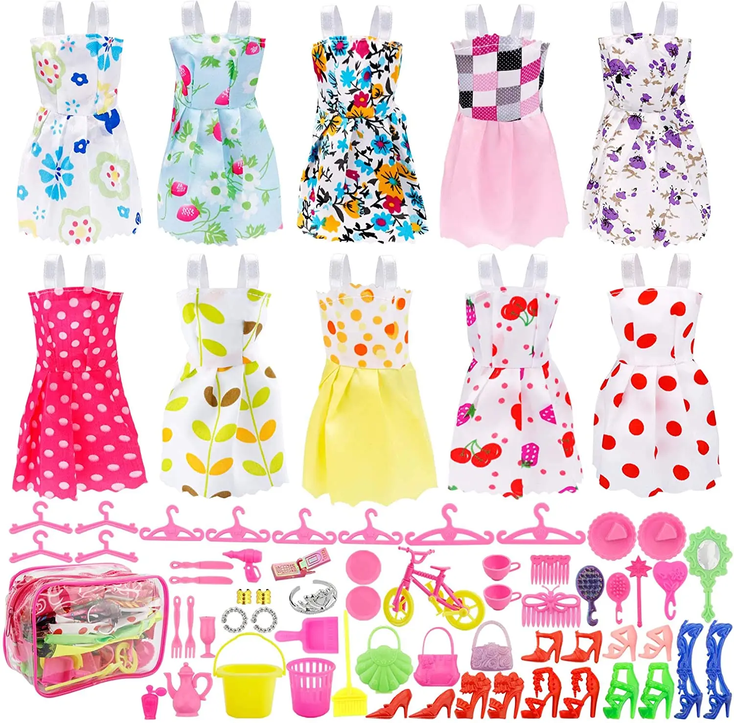 73 шт куклы одежда вечерние туфли сумка вешалка для ожерелья игрушки Аксессуары подарок Dol...